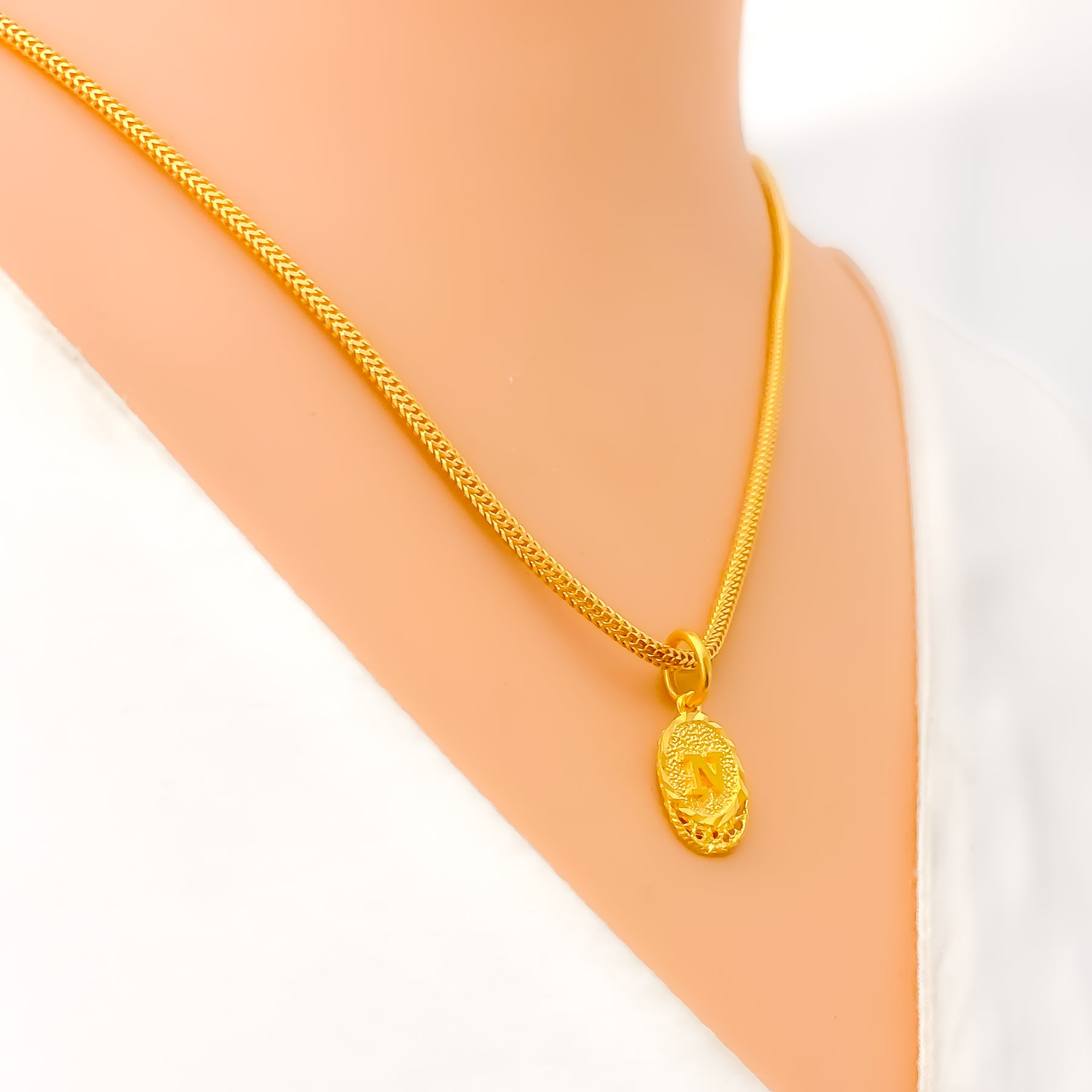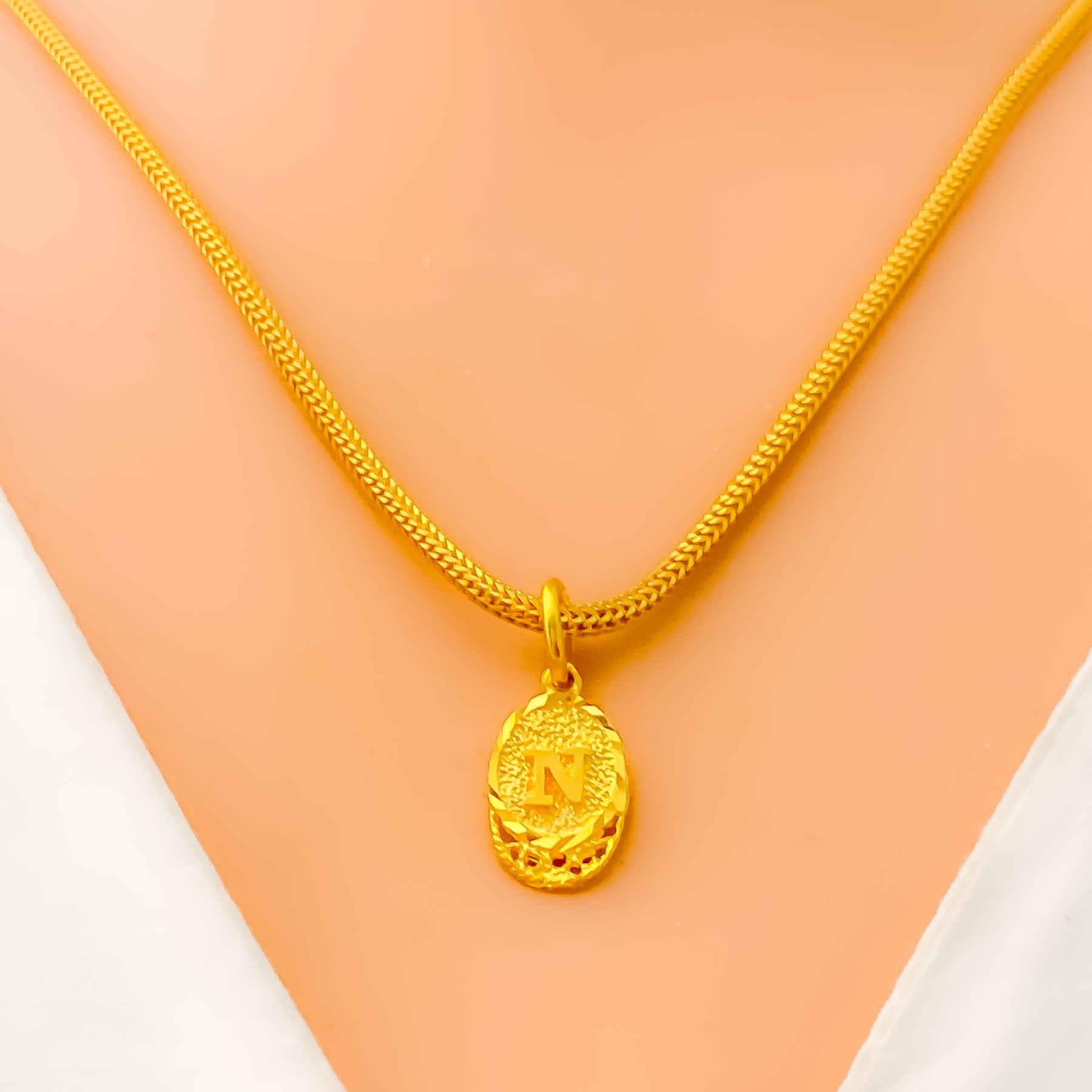 Delicately crafted, this 22k gold pendant enchants with its refined letter design and radiant glow. Weighing 1.4 grams, it embodies a perfect balance of elegance and light sophistication. The yellow gold finish enhances its luminous warmth and polished allure. At 0.75 inches, it’s a graceful accent ideal for daily wear or layered styling.