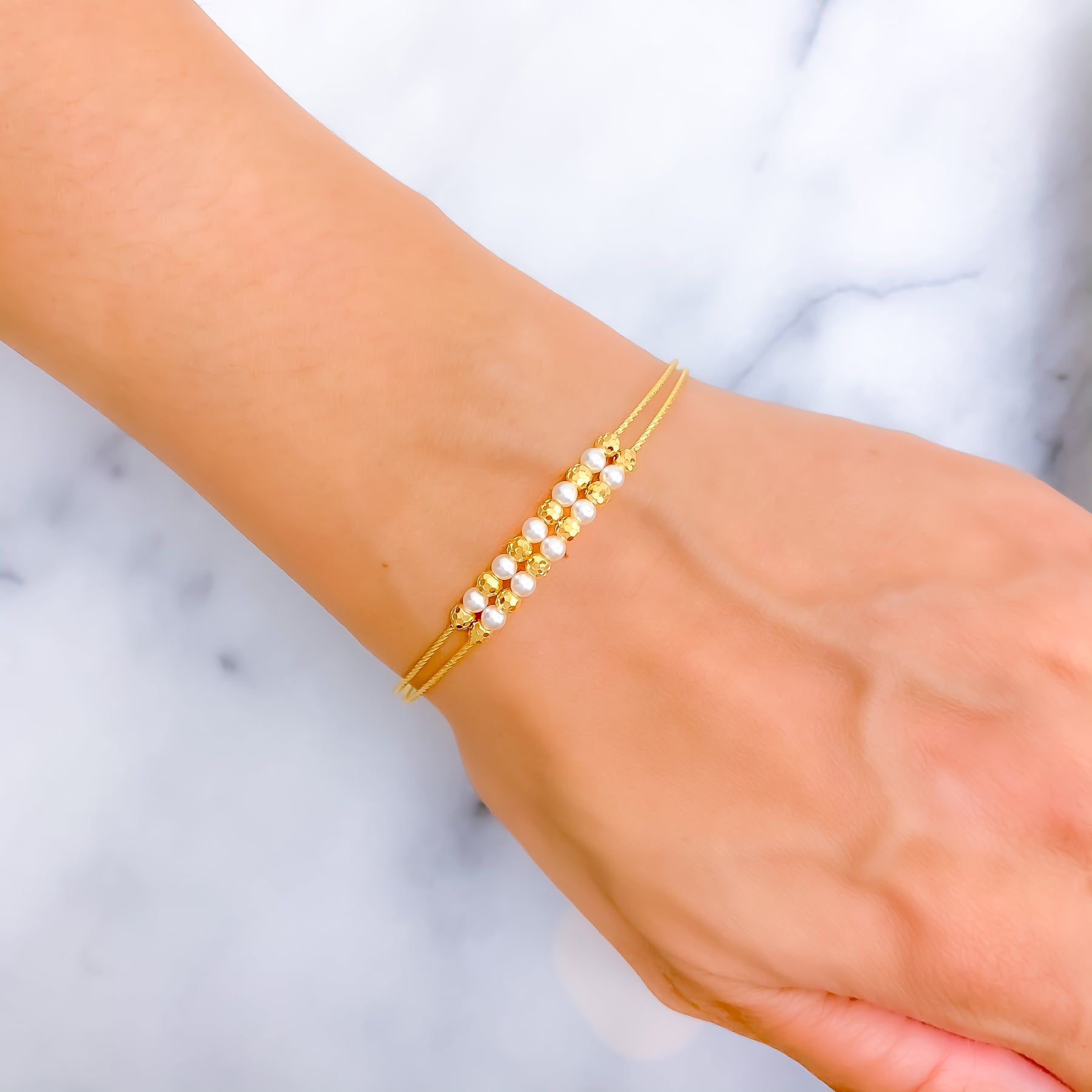 Shimmering Dual Lined 22k Gold Flexi Bangle Bracelet W/Pearl