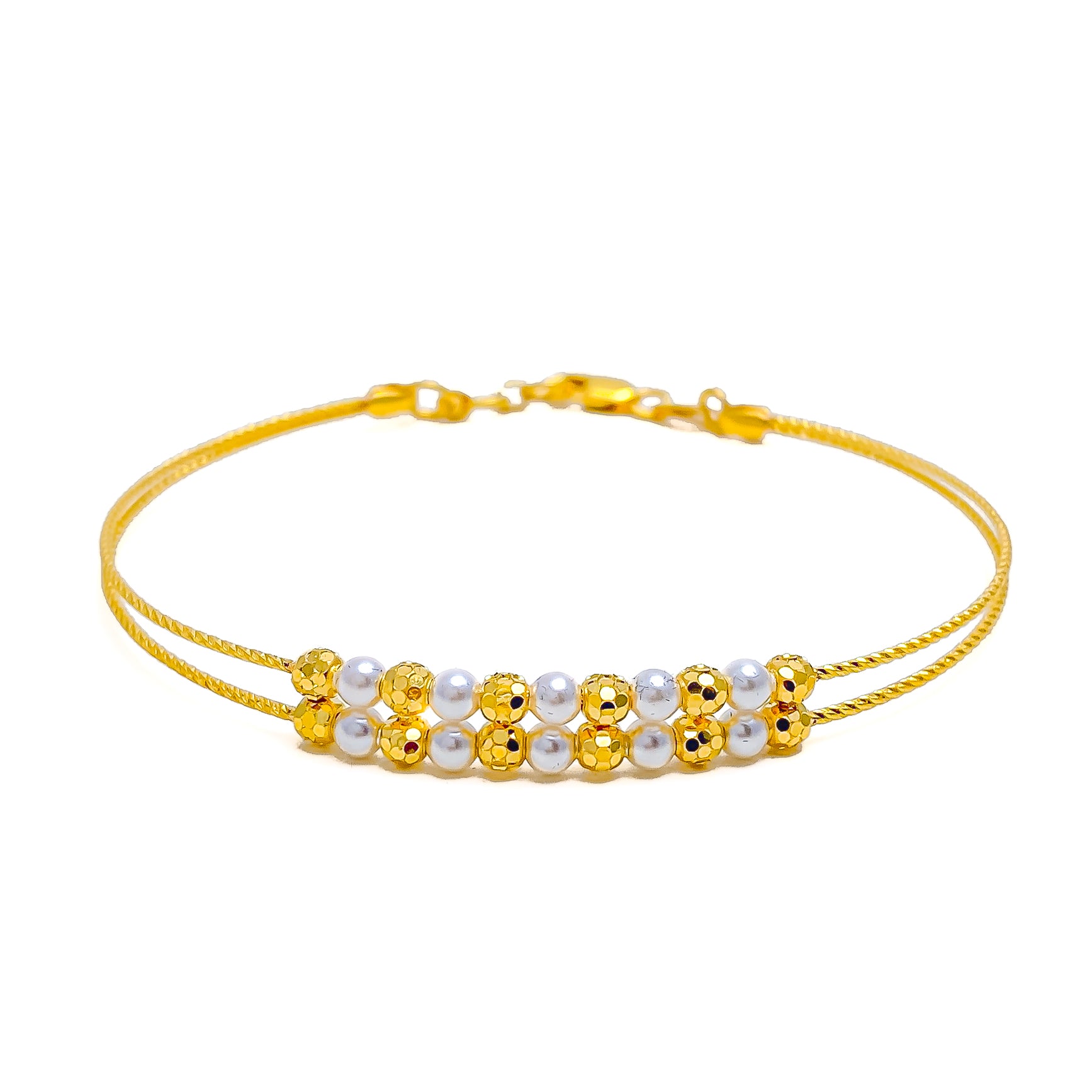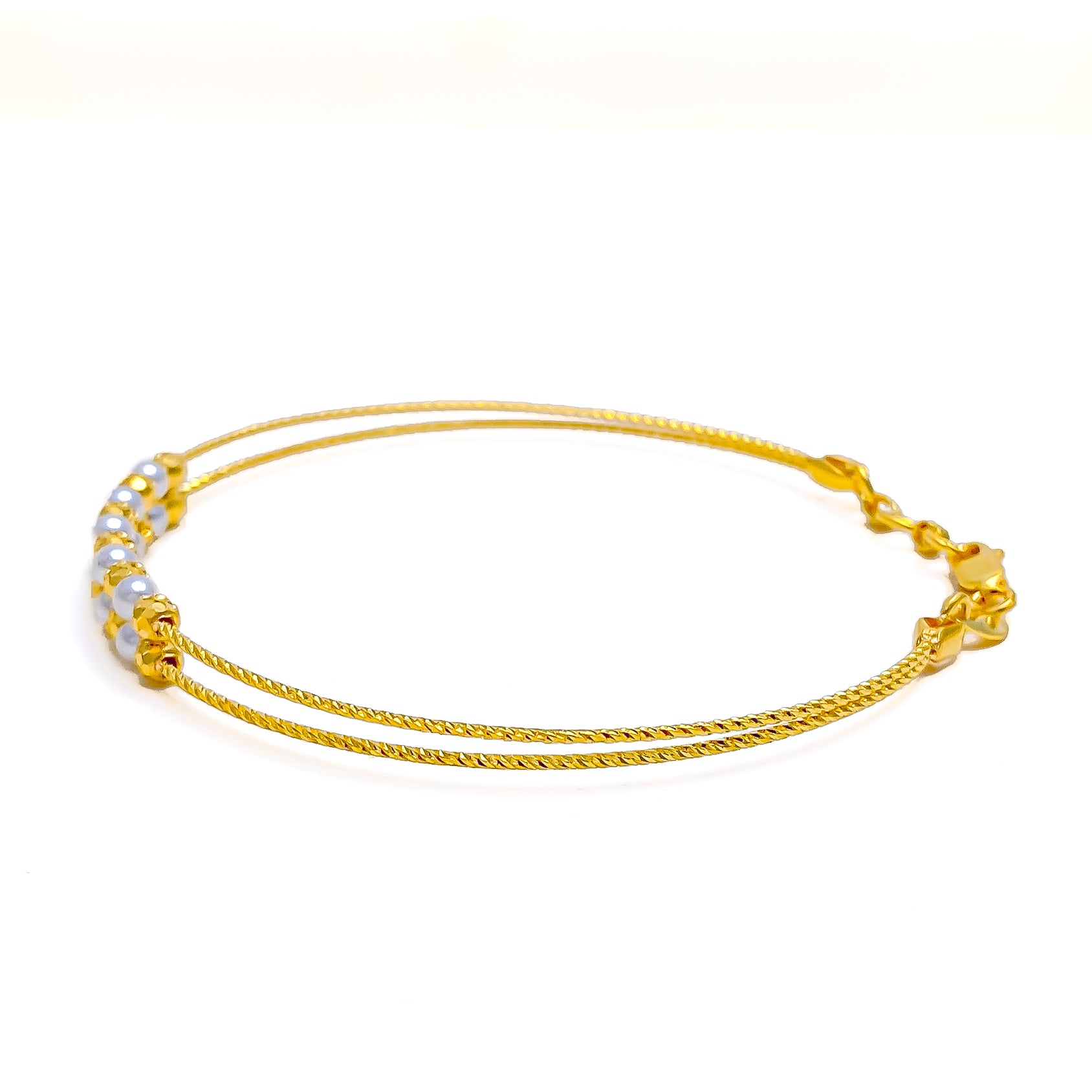 Sparkling Striped 22k Gold Flexi Bangle Bracelet W/Pearl