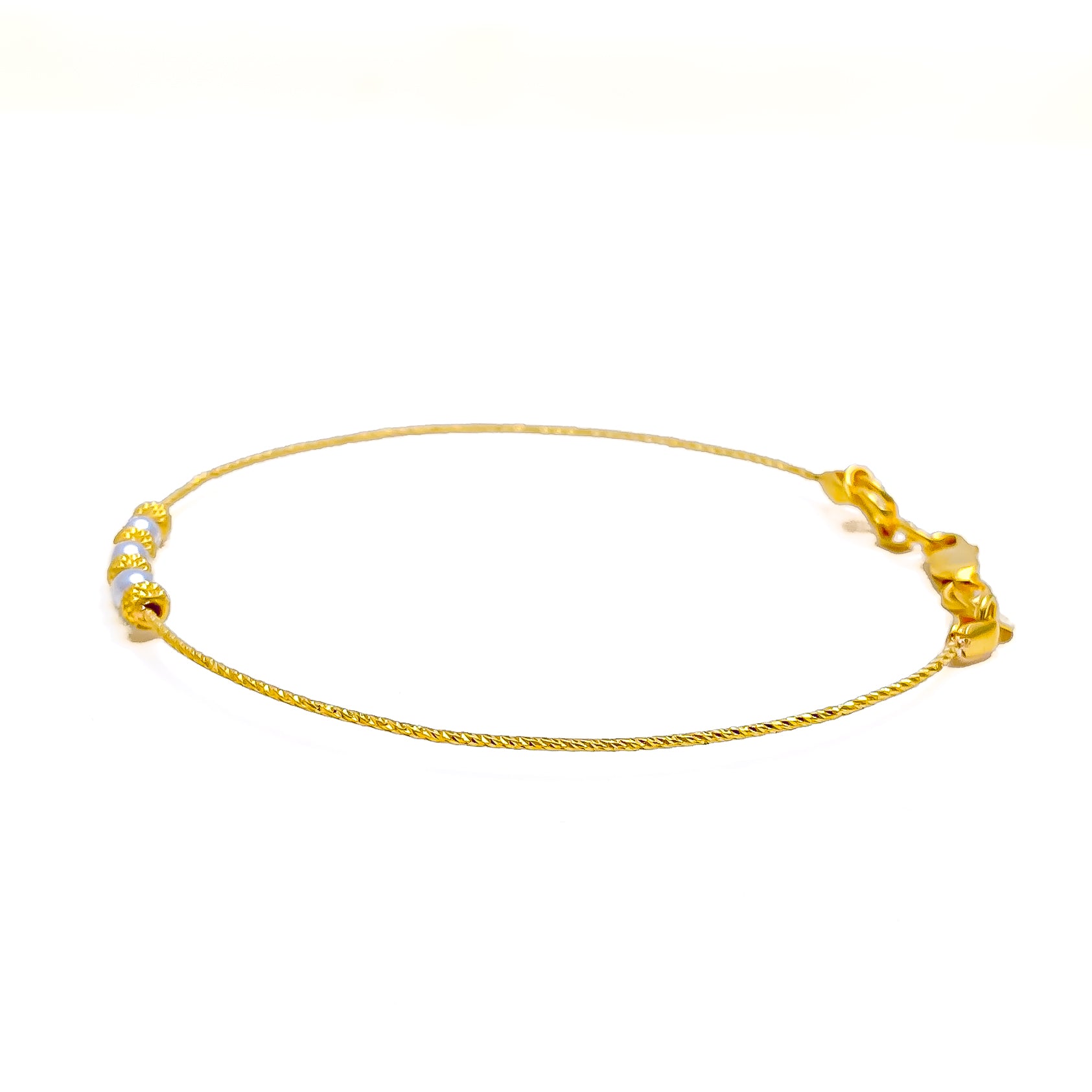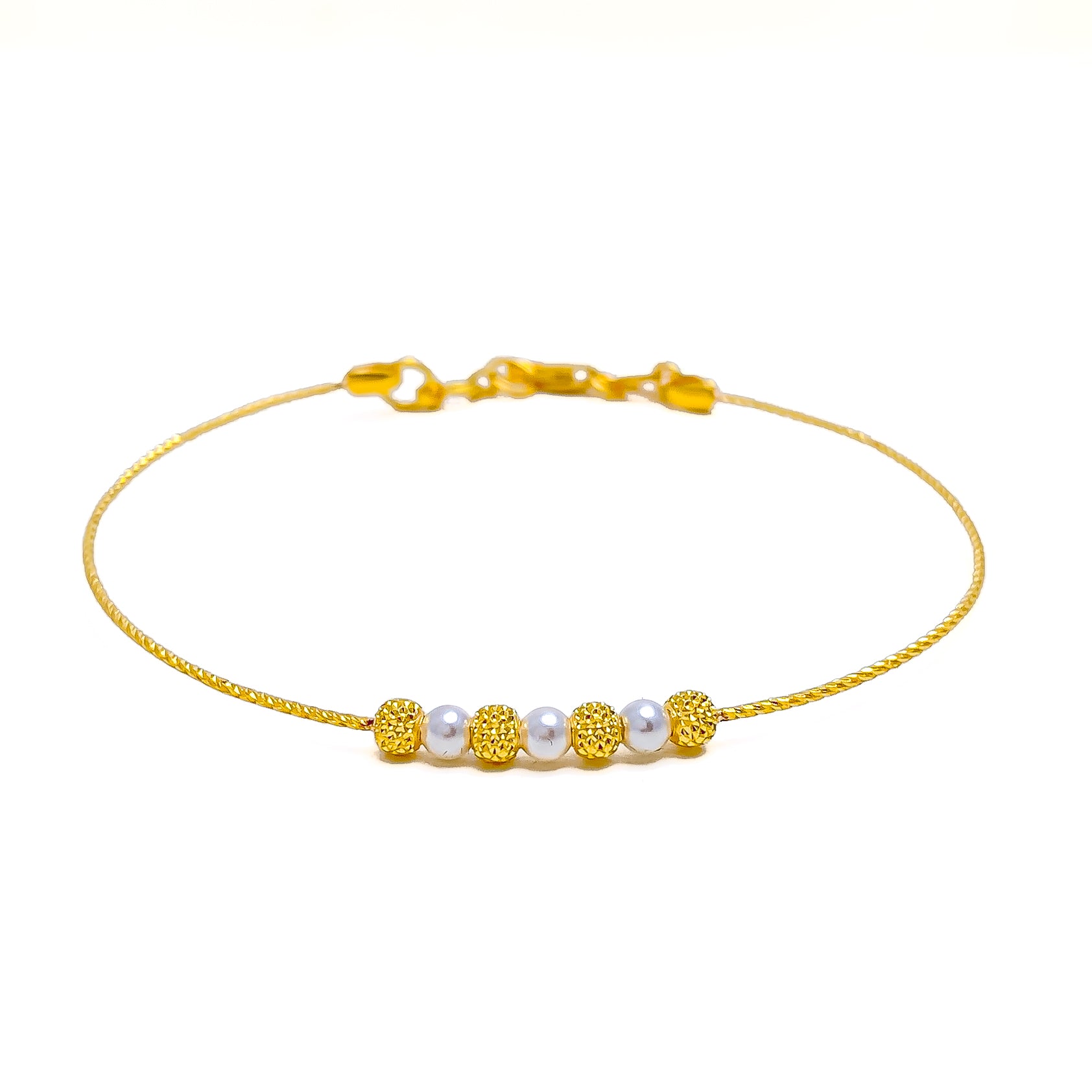 Delightful Striped 22k Gold Flexi Bangle Bracelet W/Pearl