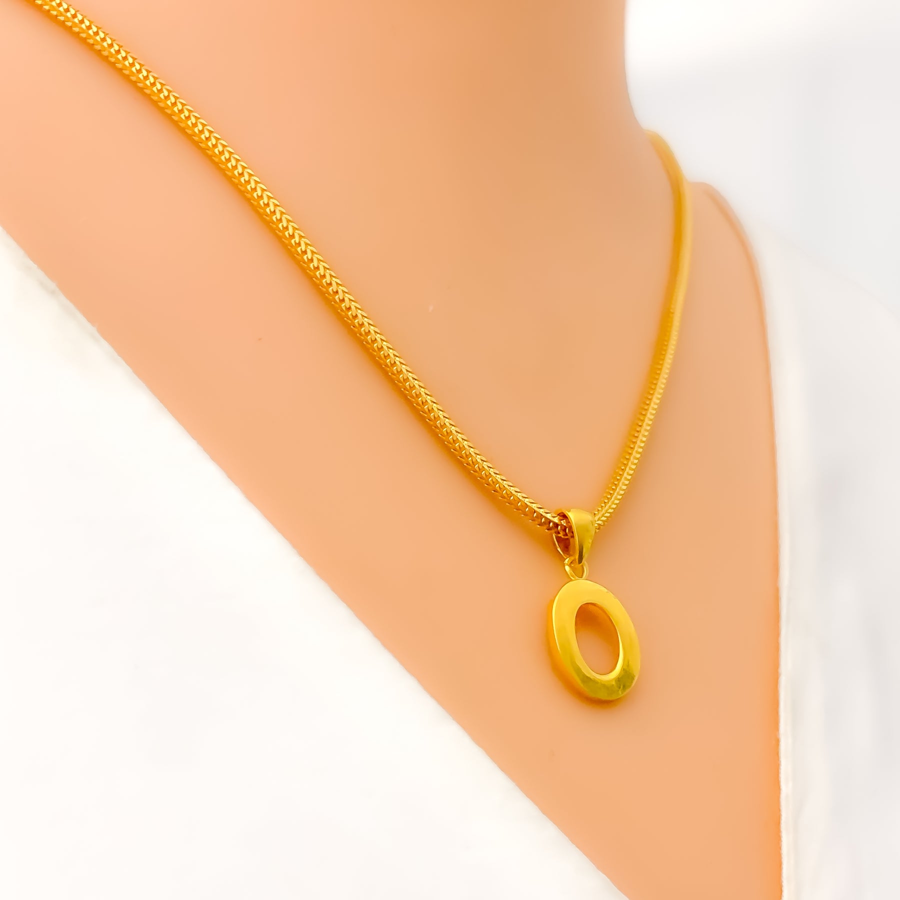Sophisticatedly crafted, this 22k gold pendant embodies refined luxury with its sleek and stylish letter design. Weighing 1.2 grams, it offers an elegant balance of delicacy and brilliance. The lustrous yellow gold finish radiates warmth and modern allure. Measuring 0.8 inches, it’s a polished statement piece that elevates any jewelry ensemble.