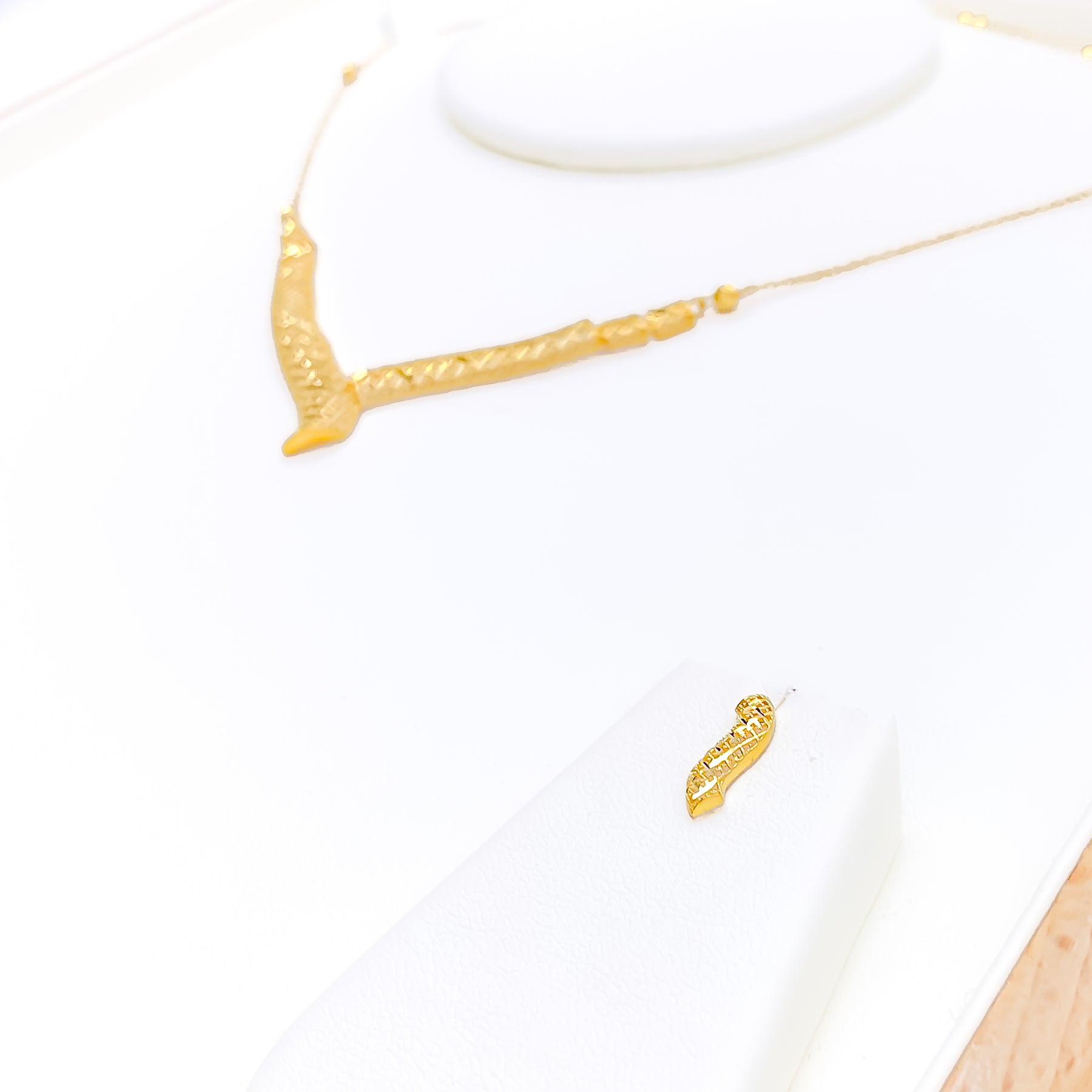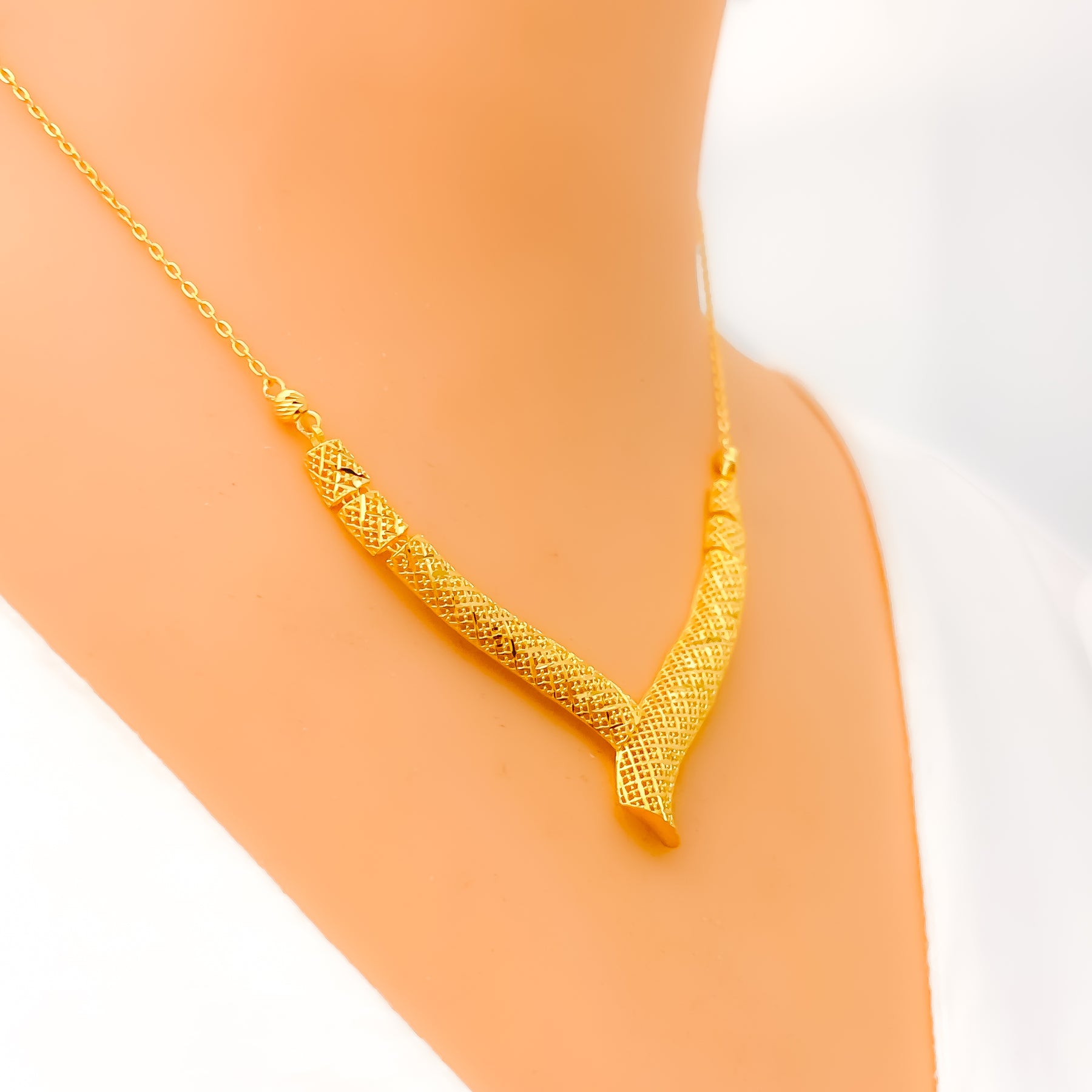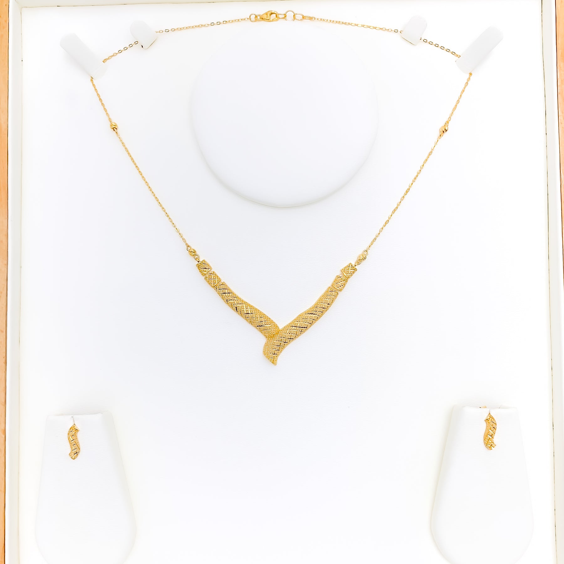 Dainty Delicate V Shaped 22k Gold Necklace Set