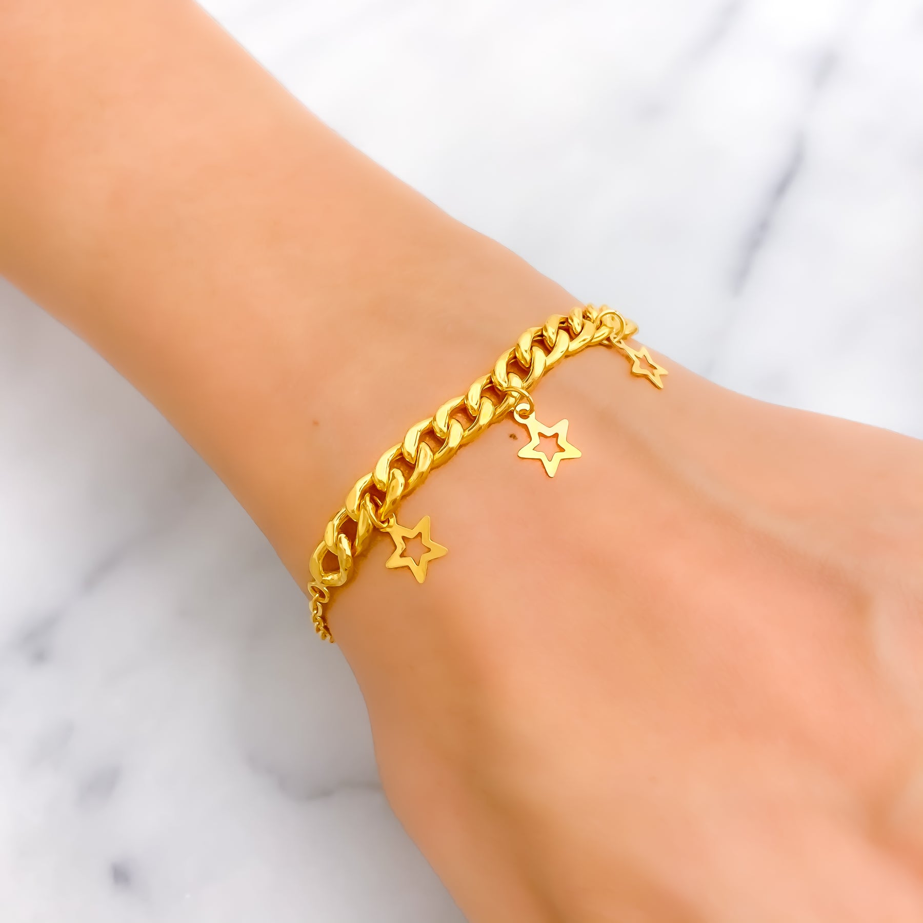Dangling Dazzling Star Adorned 21k Gold Bracelet