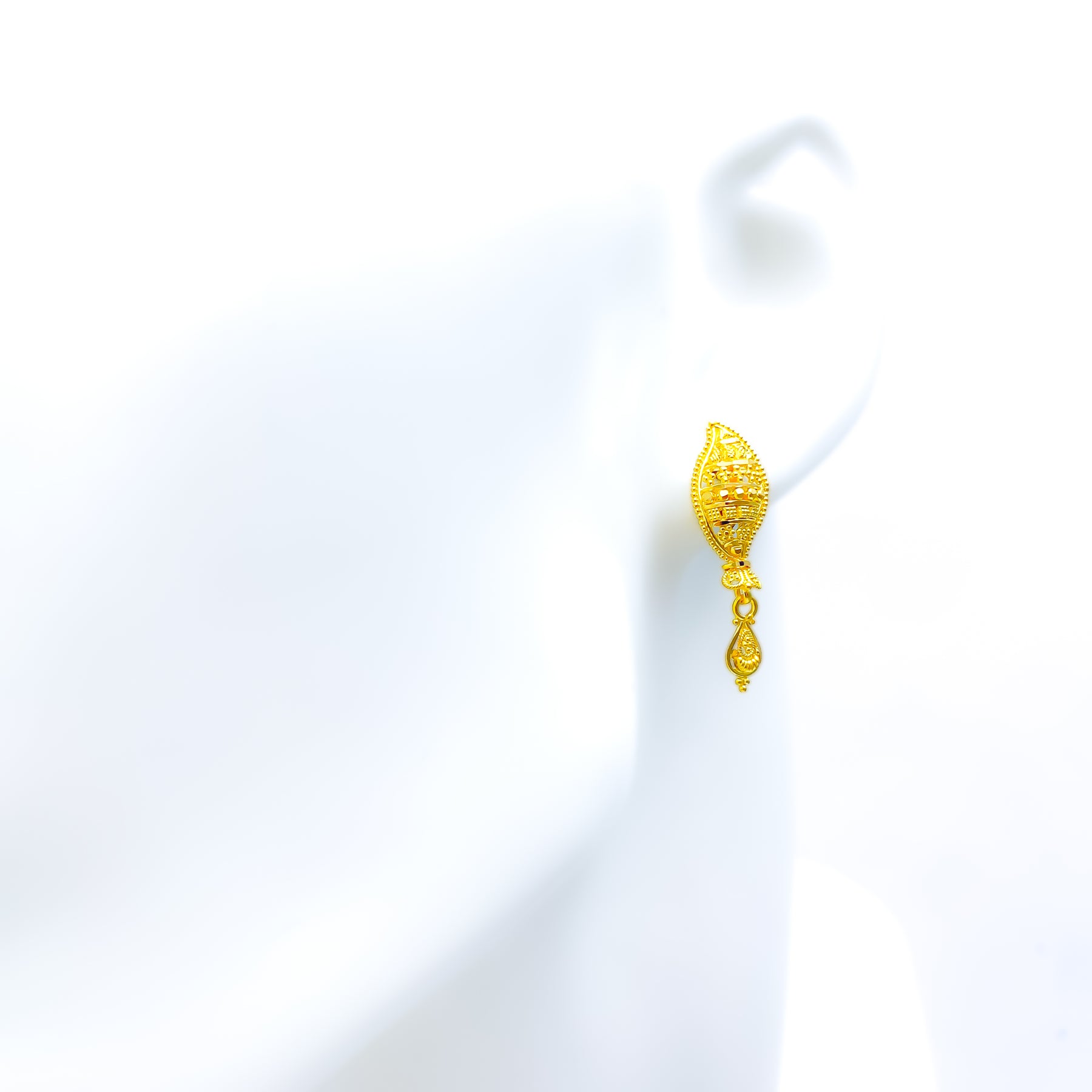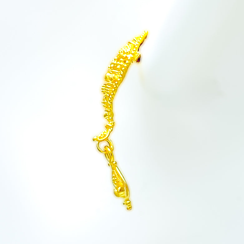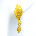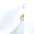 These exquisite 22k yellow gold earrings, weighing 3.9 grams, feature a decorative leaf motif complemented by elegant tassels, creating a harmonious blend of nature-inspired design and graceful movement. Designed in a classic tops style, each earring measures 1.25 inches in length and is secured with a screw-back post, ensuring a comfortable and secure fit. The high-purity gold and intricate detailing make these earrings a standout addition to any jewelry collection. Ideal for those who appreciate refined and sophisticated designs, they are perfect for both special occasions and adding a touch of luxury to everyday wear.