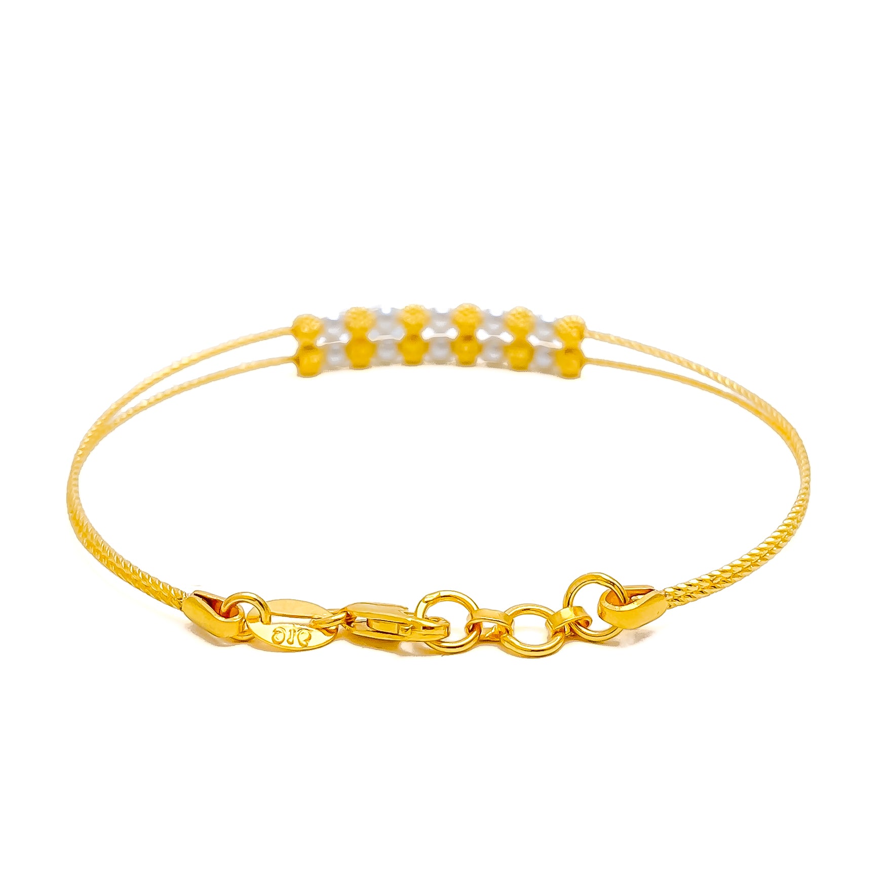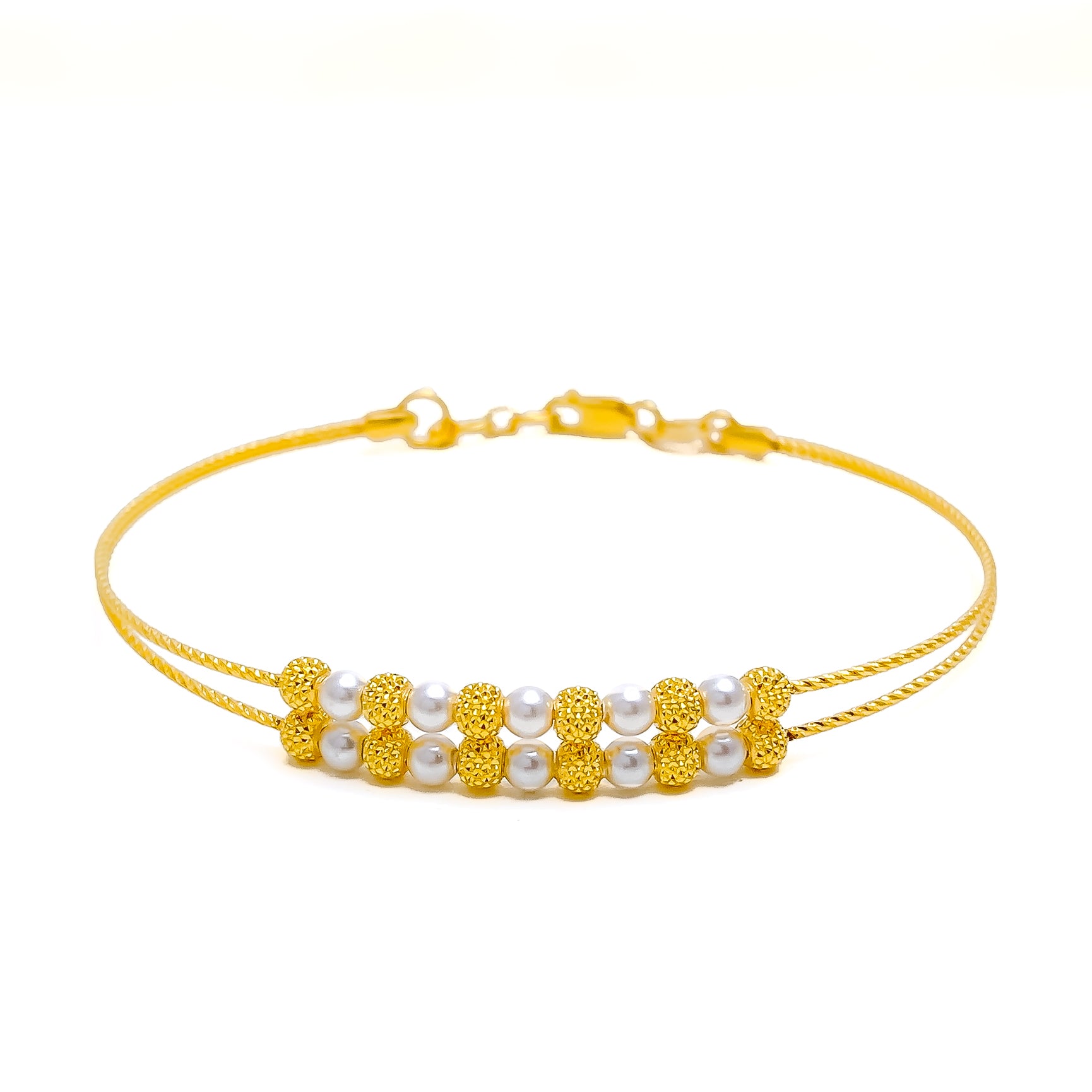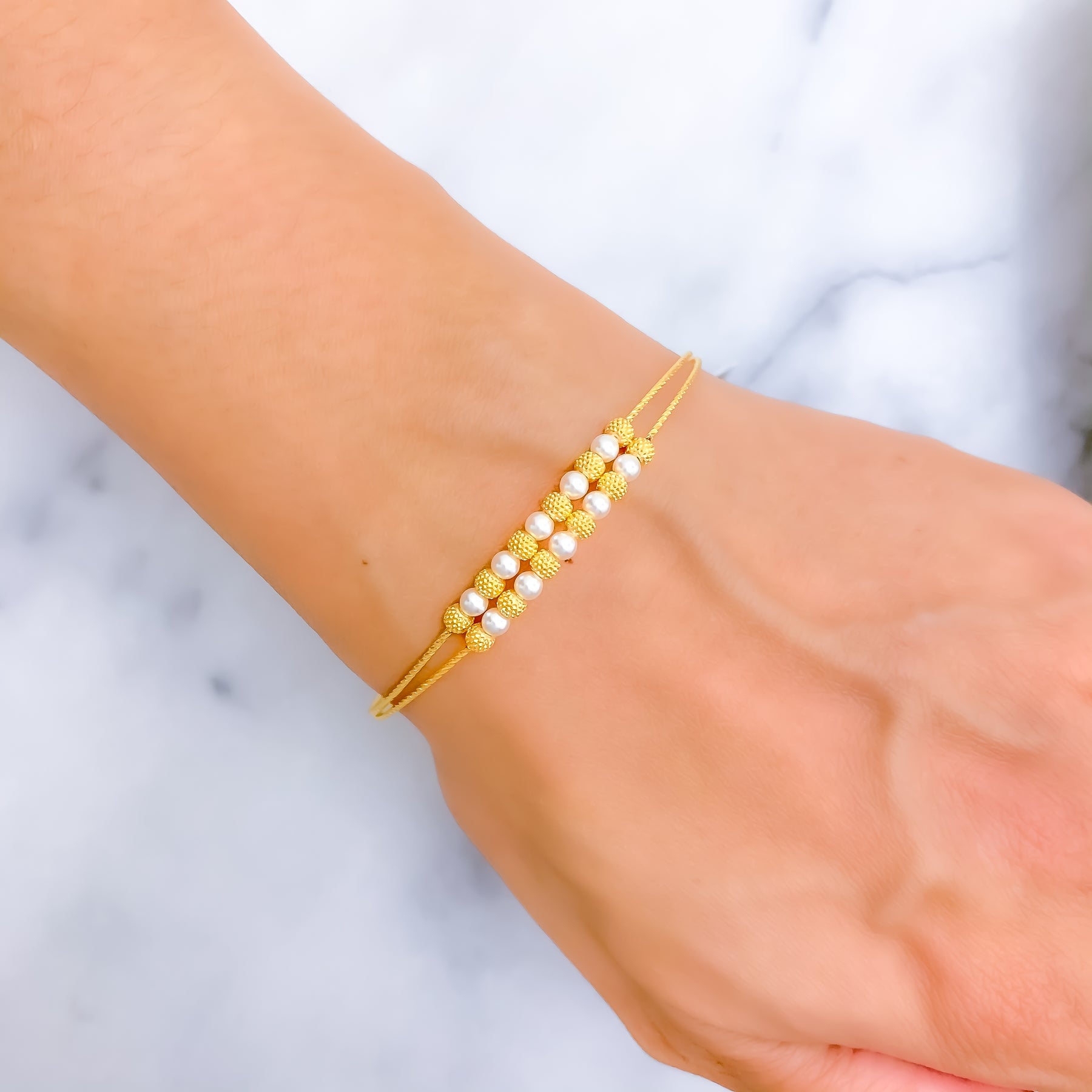 Sparkling Striped 22k Gold Flexi Bangle Bracelet W/Pearl