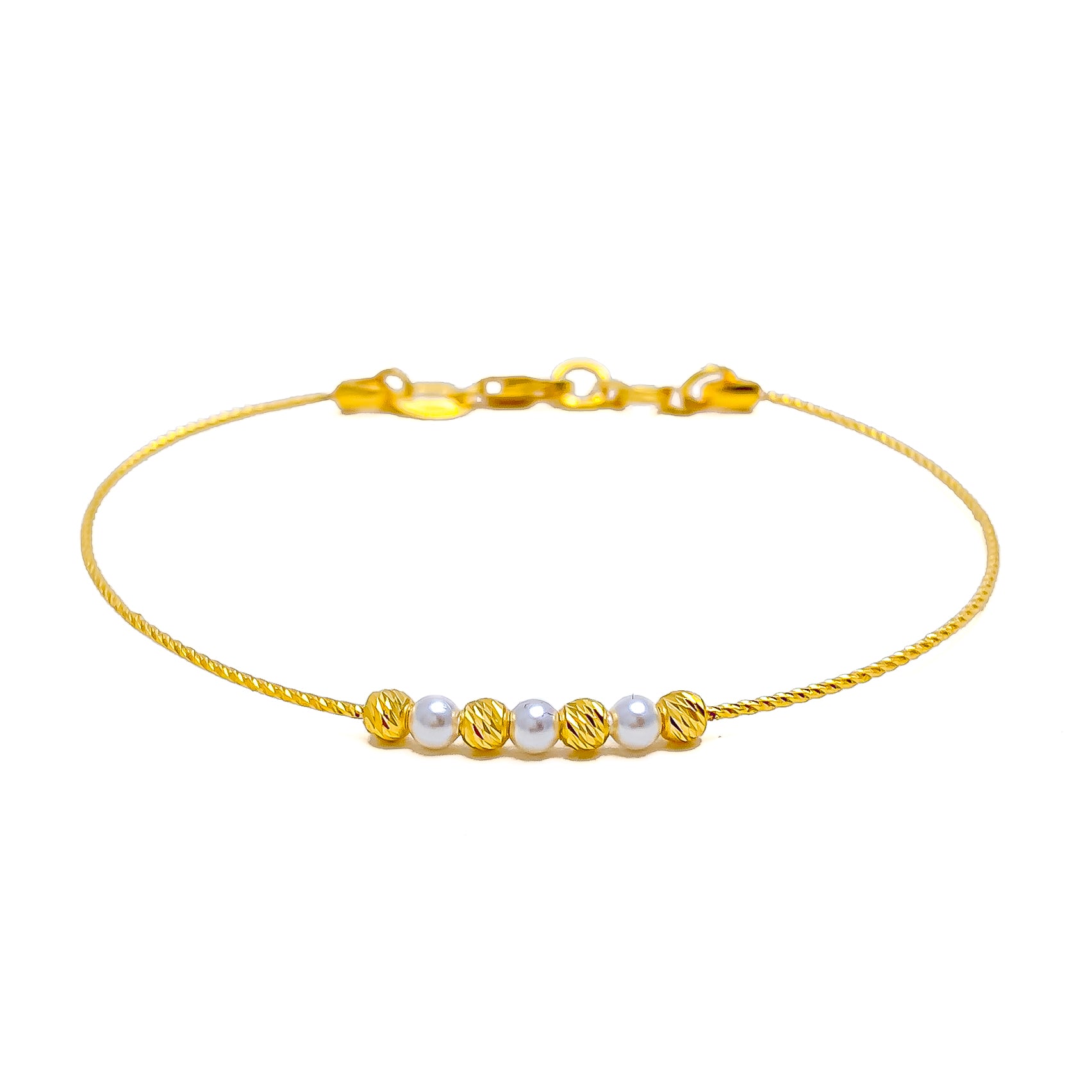 Delightful Striped 22k Gold Flexi Bangle Bracelet W/Pearl
