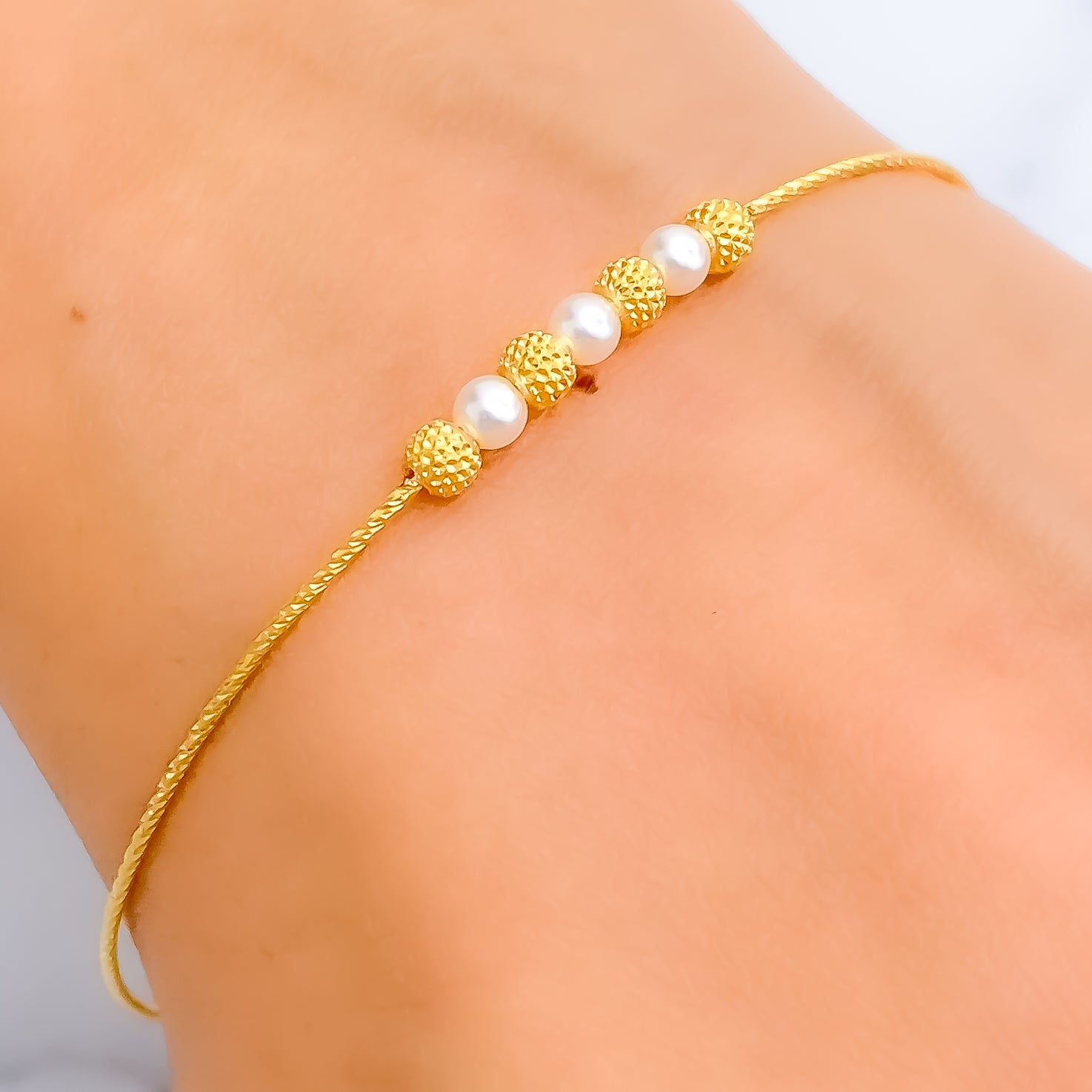 Sparkling Striped 22k Gold Flexi Bangle Bracelet W/Pearl