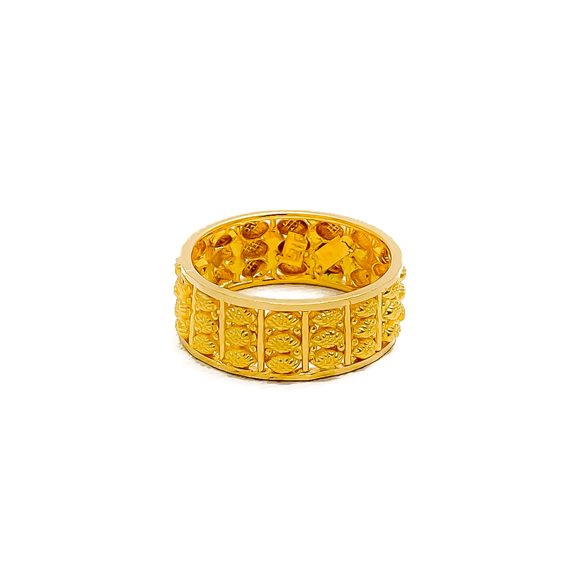Presented with stately refinement, this 22k gold band showcases a polished 3.4-gram profile shaped into a bold checkered pattern that radiates majestic character. Its warm yellow-gold finish enriches each geometric detail with glowing depth and timeless sophistication suited for many elevated looks. Designed in size 6.25 with a fixed fit, it offers a smooth, comfortable feel ideal for daily wear or special occasions. Perfect for adding a striking touch of golden grandeur to any thoughtfully curated collection.