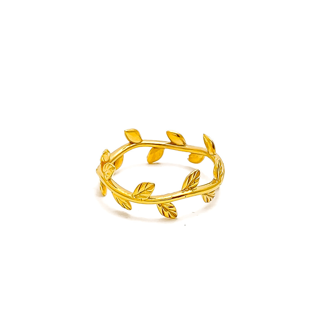 Crafted with enchanting detail, this 21k gold ring showcases a polished 2.0-gram profile shaped with a graceful leaf accent that adds natural elegance. Its yellow-gold finish enriches the smooth band with warm radiance and refined charm. Designed in size 4.75, it offers comfortable wear with resizing available to ensure the perfect fit. Ideal for those who appreciate organic-inspired beauty that enhances everyday style with timeless sophistication.