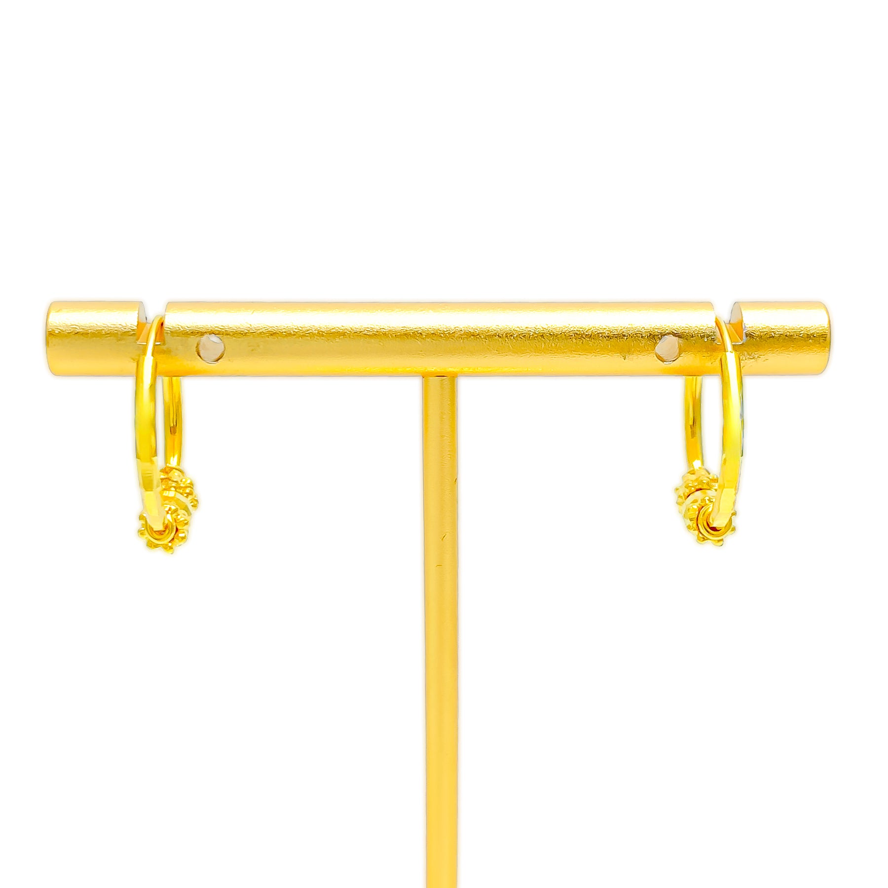 Effortlessly elegant, these 22k gold Bali earrings radiate with a modern yet classic charm. Weighing 2.9 grams and measuring 0.6 inches in diameter, they bring a perfect blend of lightness and luxury. The polished yellow gold finish enhances their luminous beauty, ideal for refined everyday wear or graceful evening allure.