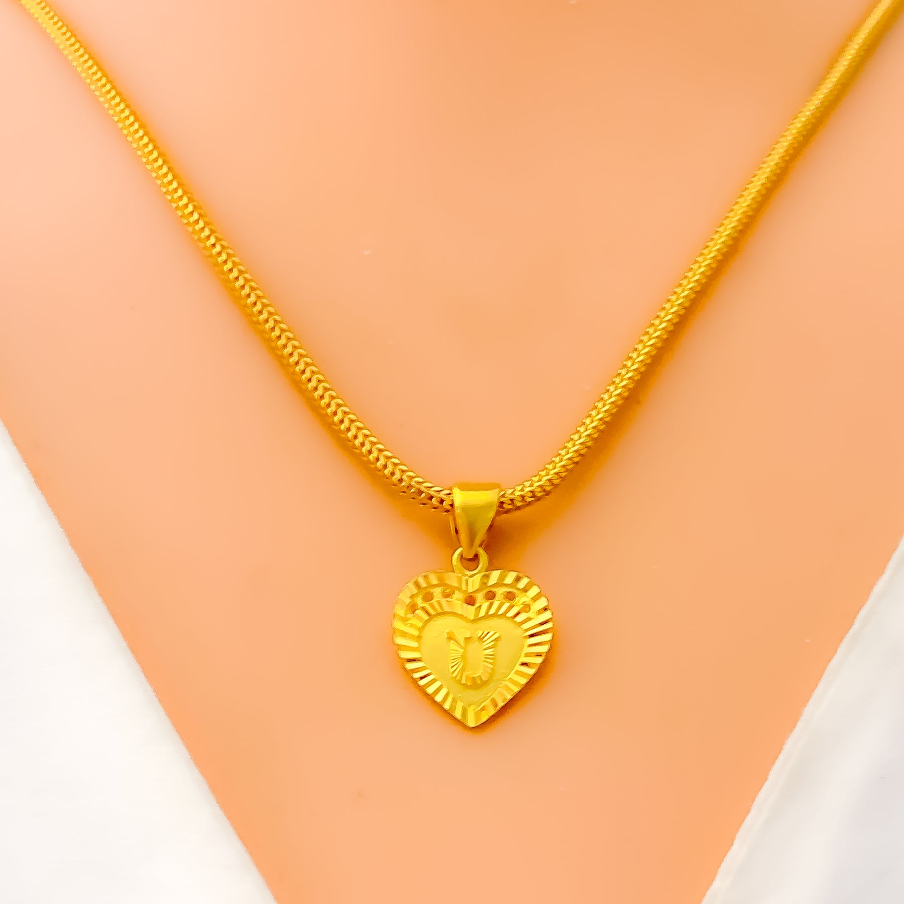 Expertly crafted, this 22k gold pendant reflects modern sophistication with its smooth and radiant letter design. Weighing 1.4 grams, it strikes the perfect balance between elegance and comfort. The polished yellow gold finish enhances its bright, mirror-like glow. Measuring 0.75 inches, it’s an ideal piece for both daily wear and refined styling.