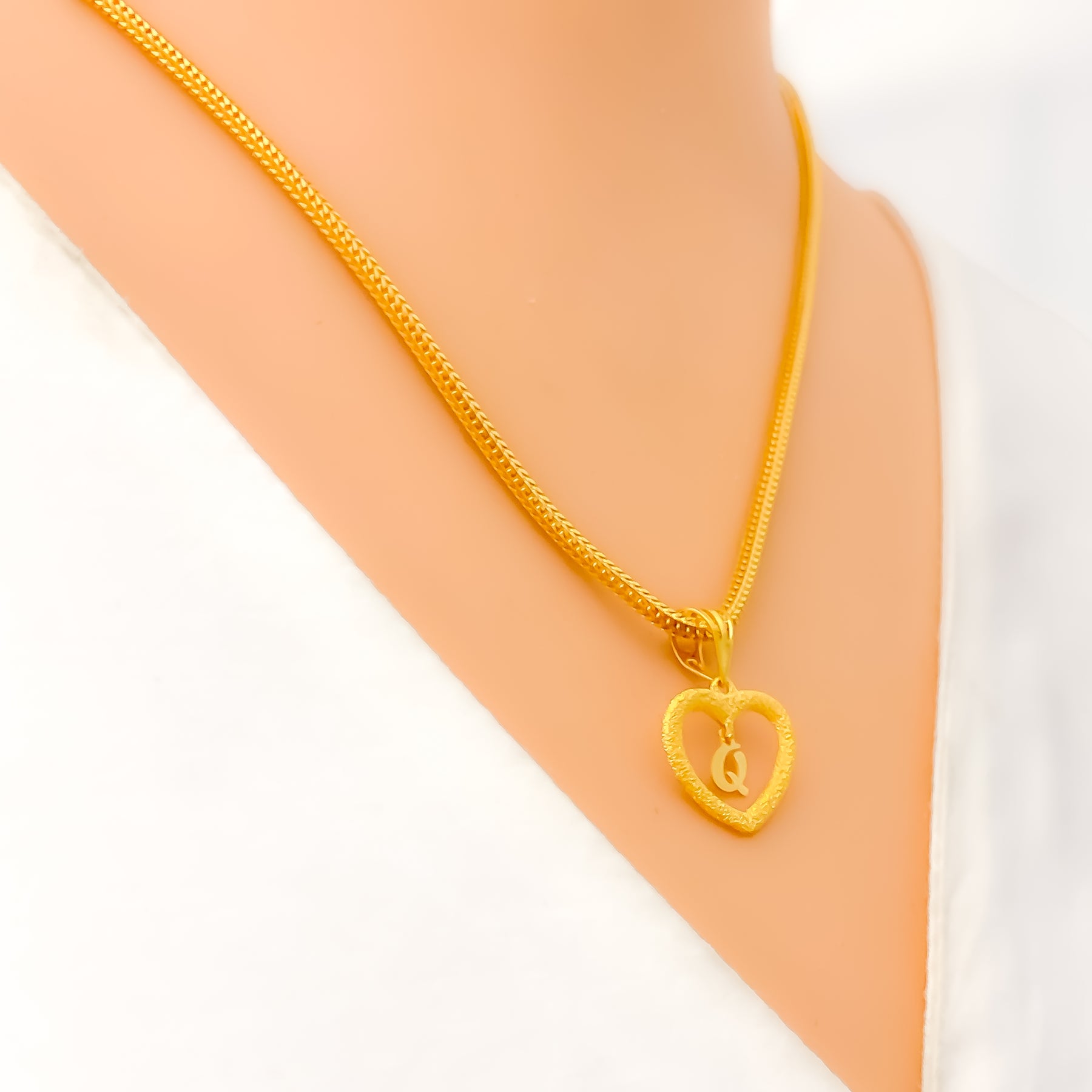 Finely designed, this 22k gold pendant showcases a tasteful letter motif that exudes modern refinement. Weighing 1.2 grams, it combines delicate lightness with a luxurious finish. The radiant yellow gold polish enhances its graceful silhouette and shine. At 0.75 inches, it’s a versatile accent that complements any look with understated elegance.
