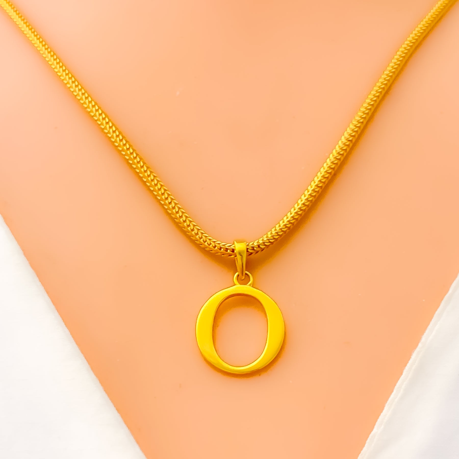 Gracefully understated, this 22k gold pendant exudes quiet sophistication through its refined letter form. Weighing 1.3 grams, it captures an ideal harmony of elegance and simplicity. The radiant yellow gold finish enhances its warm, polished glow. At 0.75 inches, it’s a timeless piece that complements any personal style with ease.