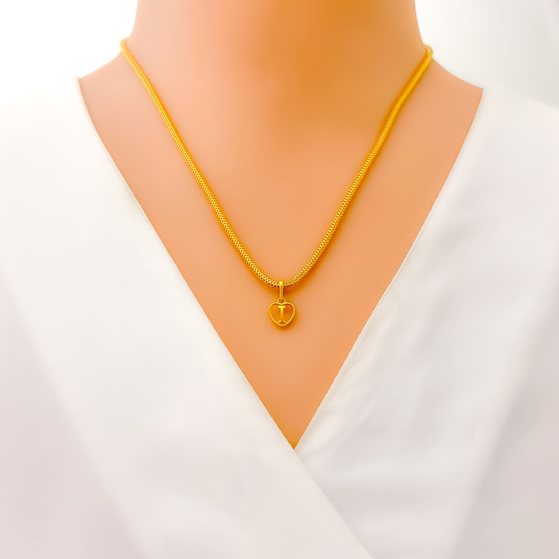 This chic 22k gold pendant combines modern flair with timeless appeal through its artfully crafted letter design. The radiant yellow gold finish enhances its polished silhouette, adding a subtle glow to any outfit. At 0.6 inches, it delivers a delicate yet striking presence. Perfect for layering or solo wear, it symbolizes individuality with refined elegance.