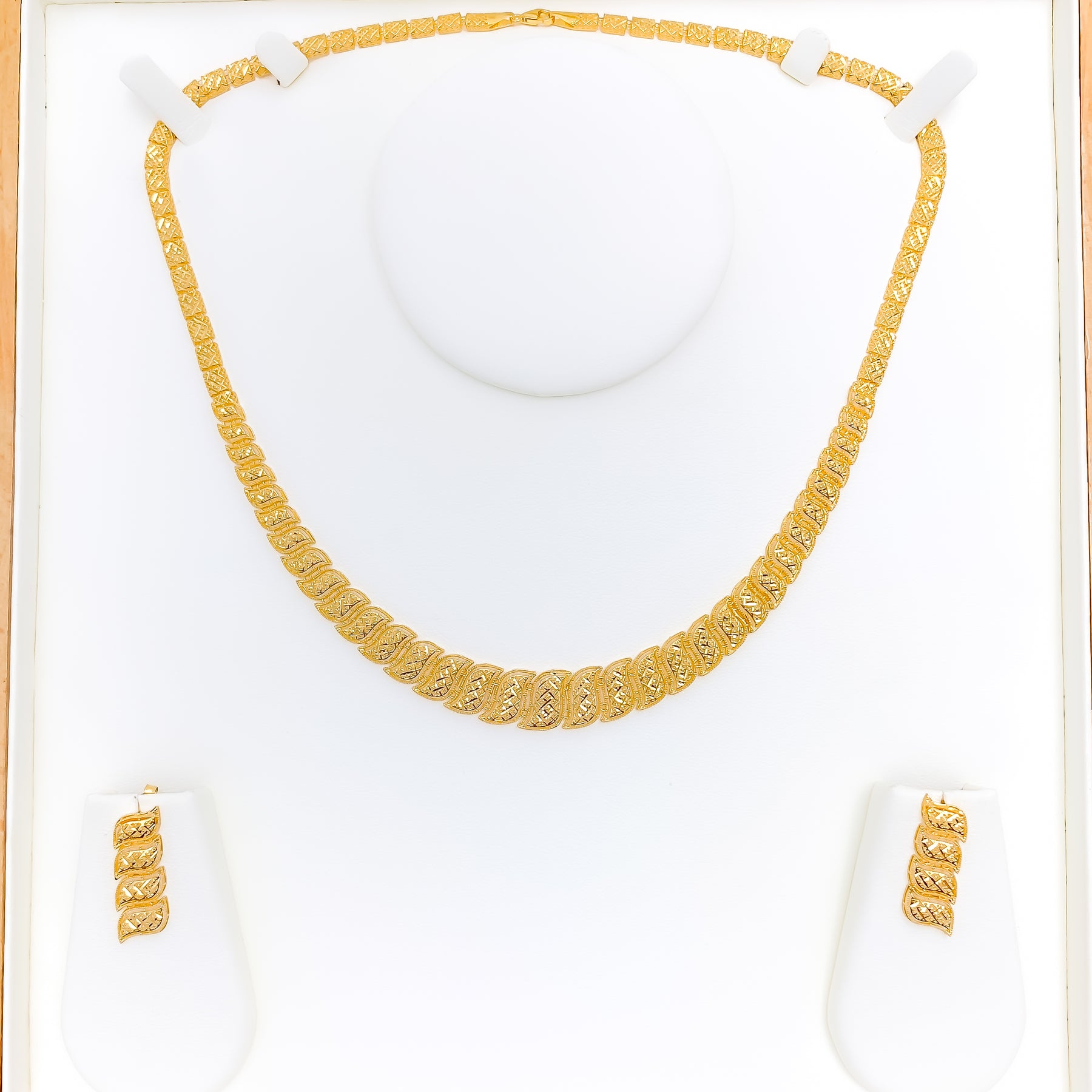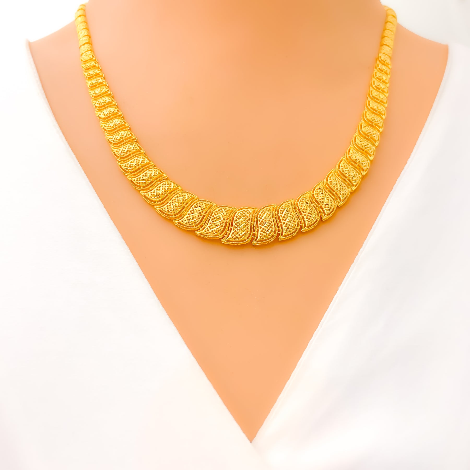 Dazzling Golden Leaf 22k Gold Necklace Set