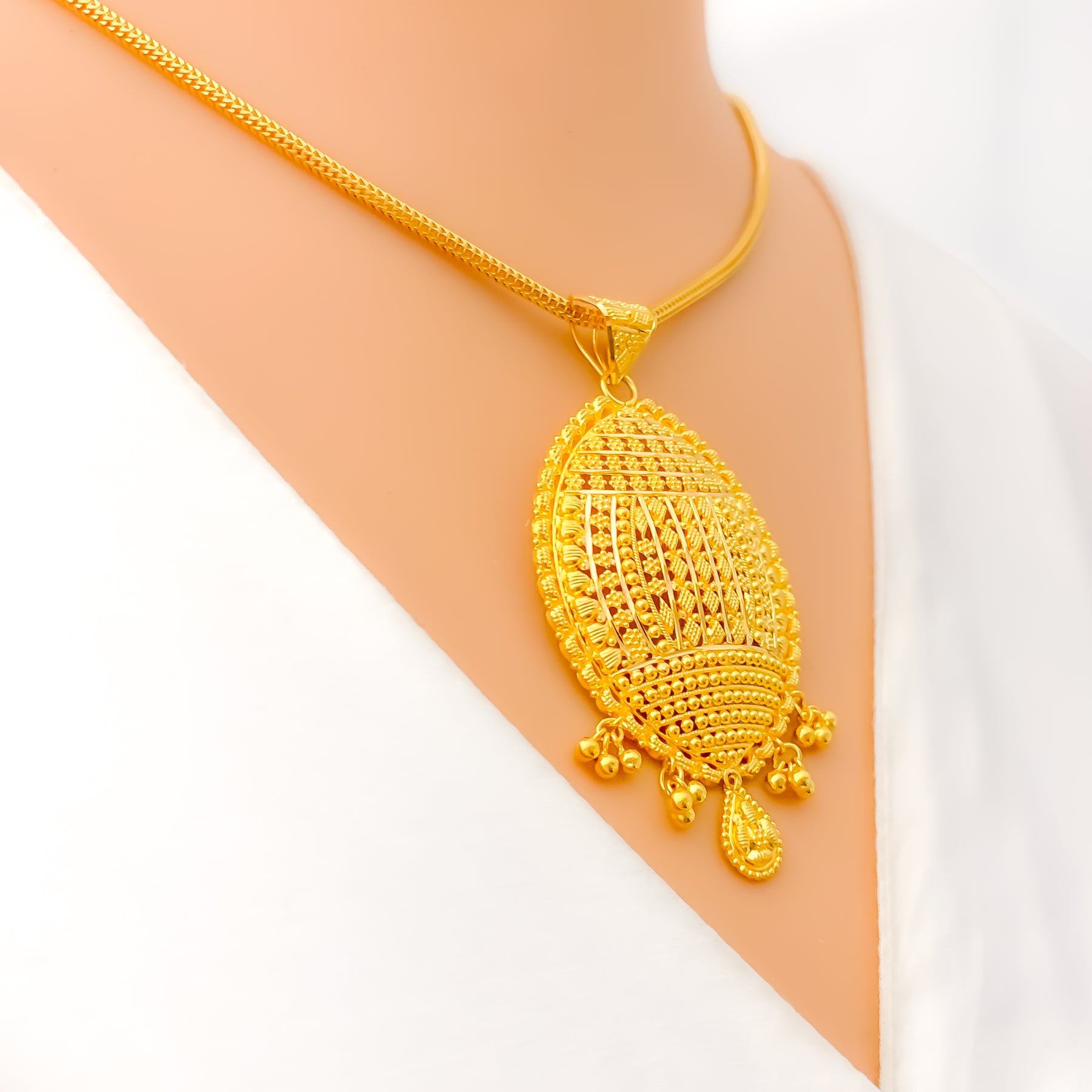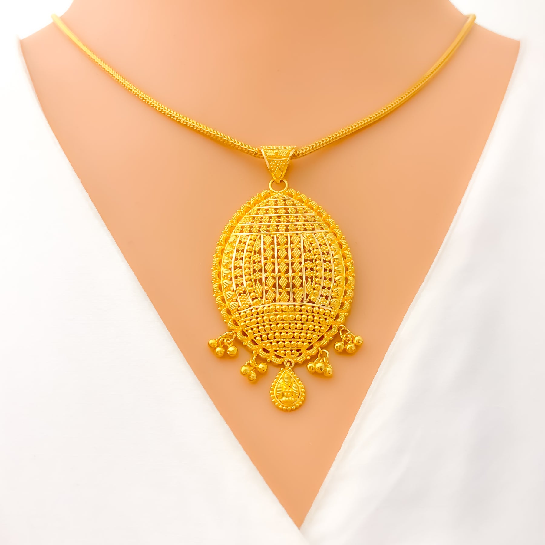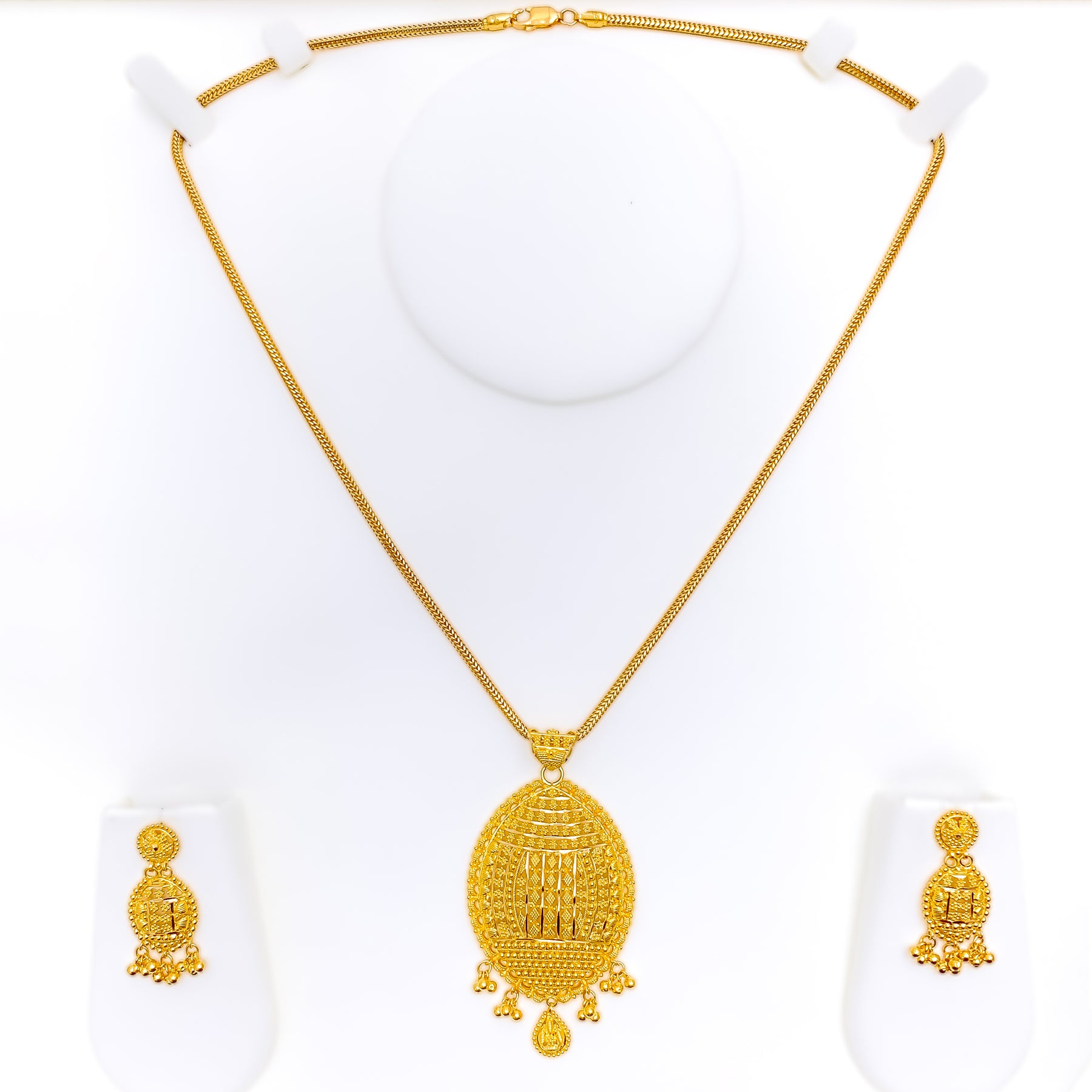 Embellished Elliptical Marquise 22k Gold Pendant Set