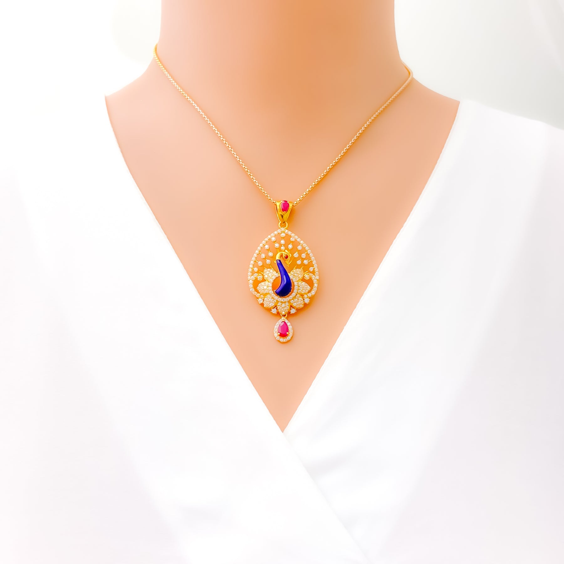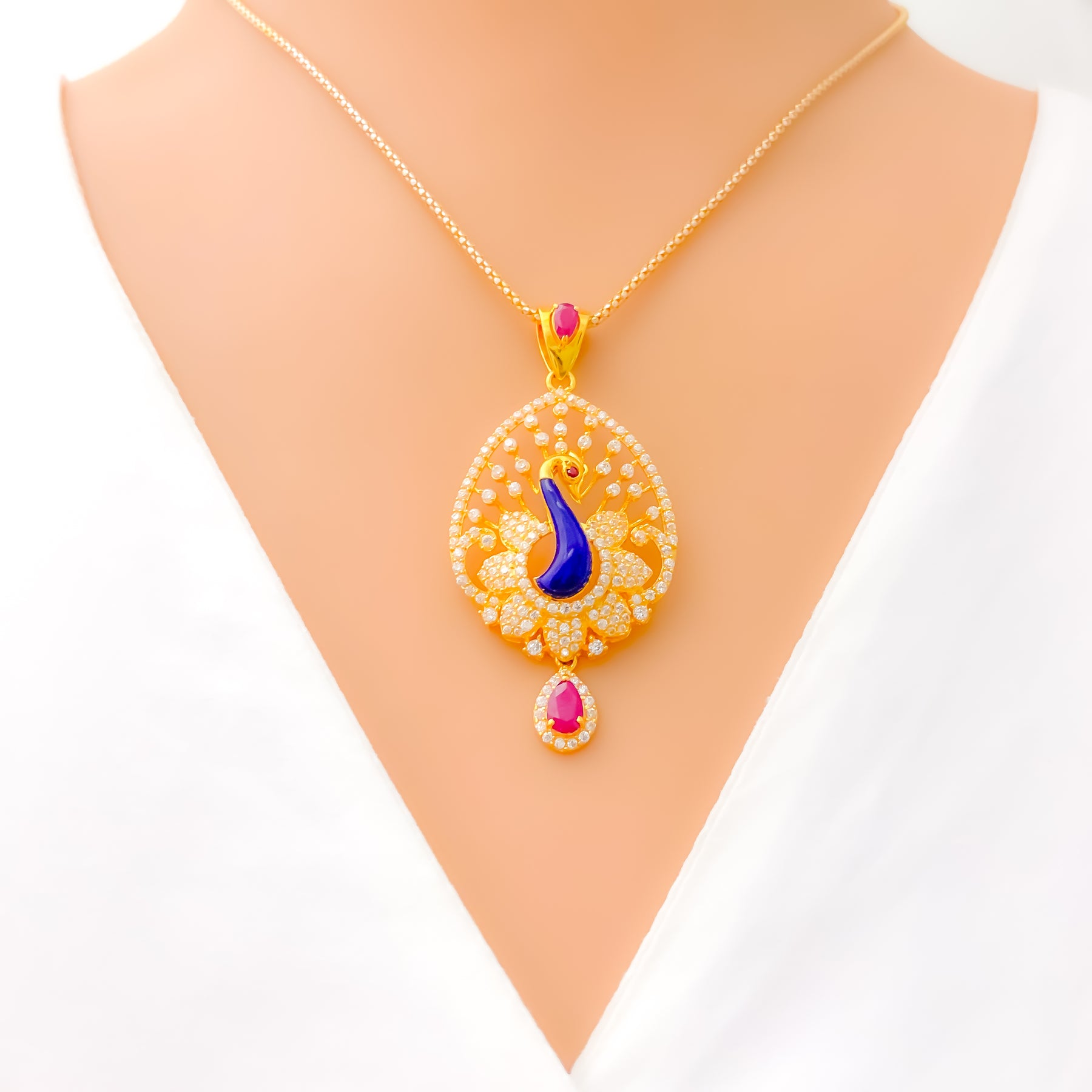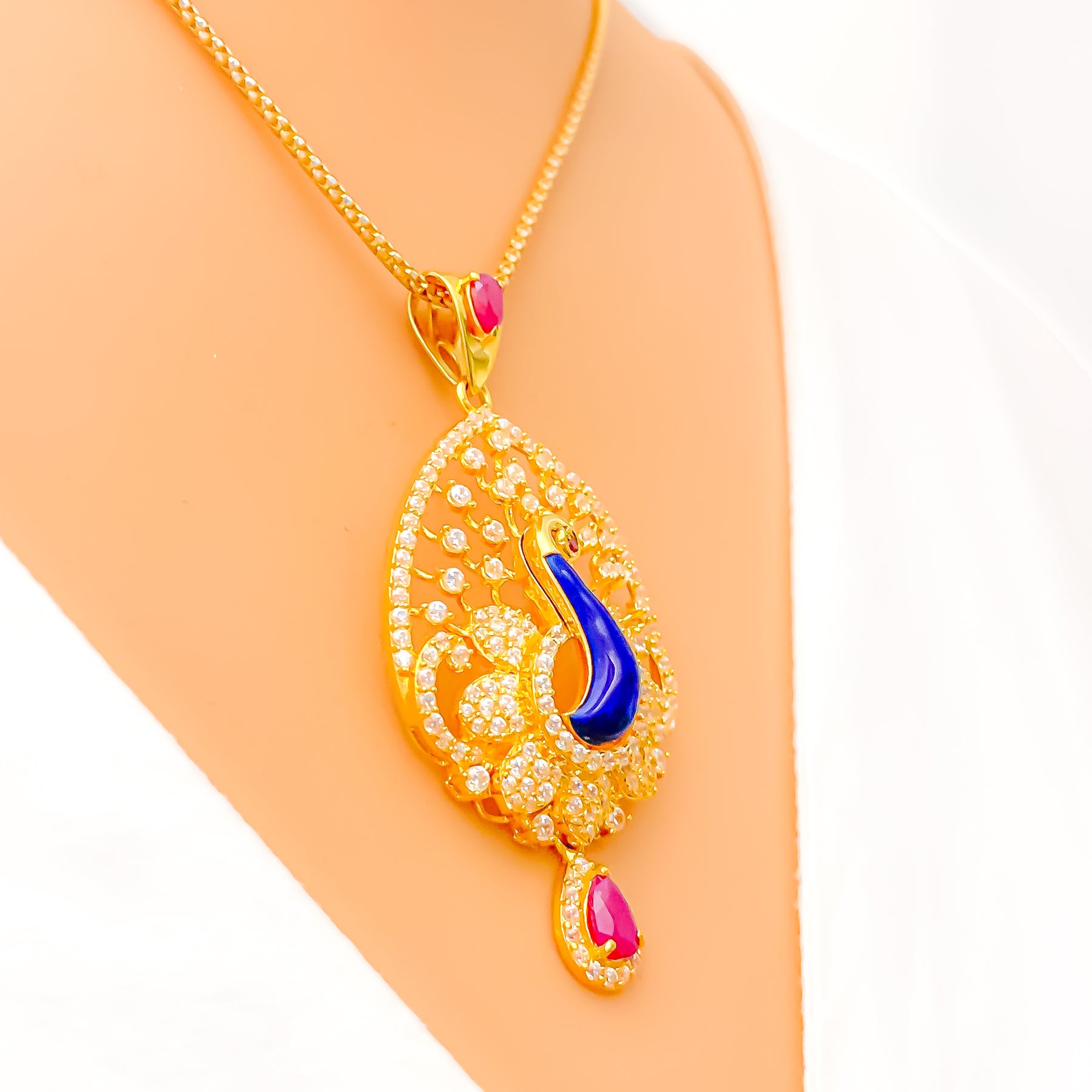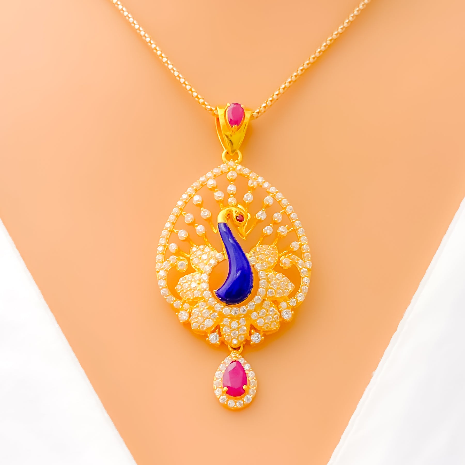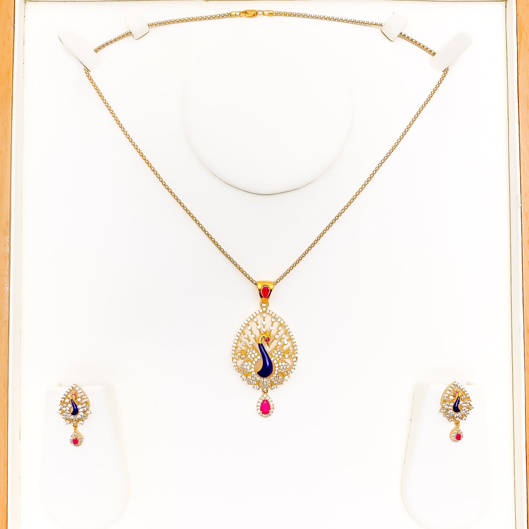 Defined with striking presence, this 22k gold pendant set showcases a substantial 13.7-gram profile enhanced by brilliant CZ stones that illuminate its bold 2.2-inch centerpiece. Its warm yellow-gold finish enriches every sculpted detail with radiant depth and iconic character. The matching 1-inch screw-back earrings deliver a refined balance of standout elegance and everyday versatility suited for many styles. Presented as a three-piece ensemble, it brings a distinct touch of luxurious golden sophistication to any thoughtfully curated look.