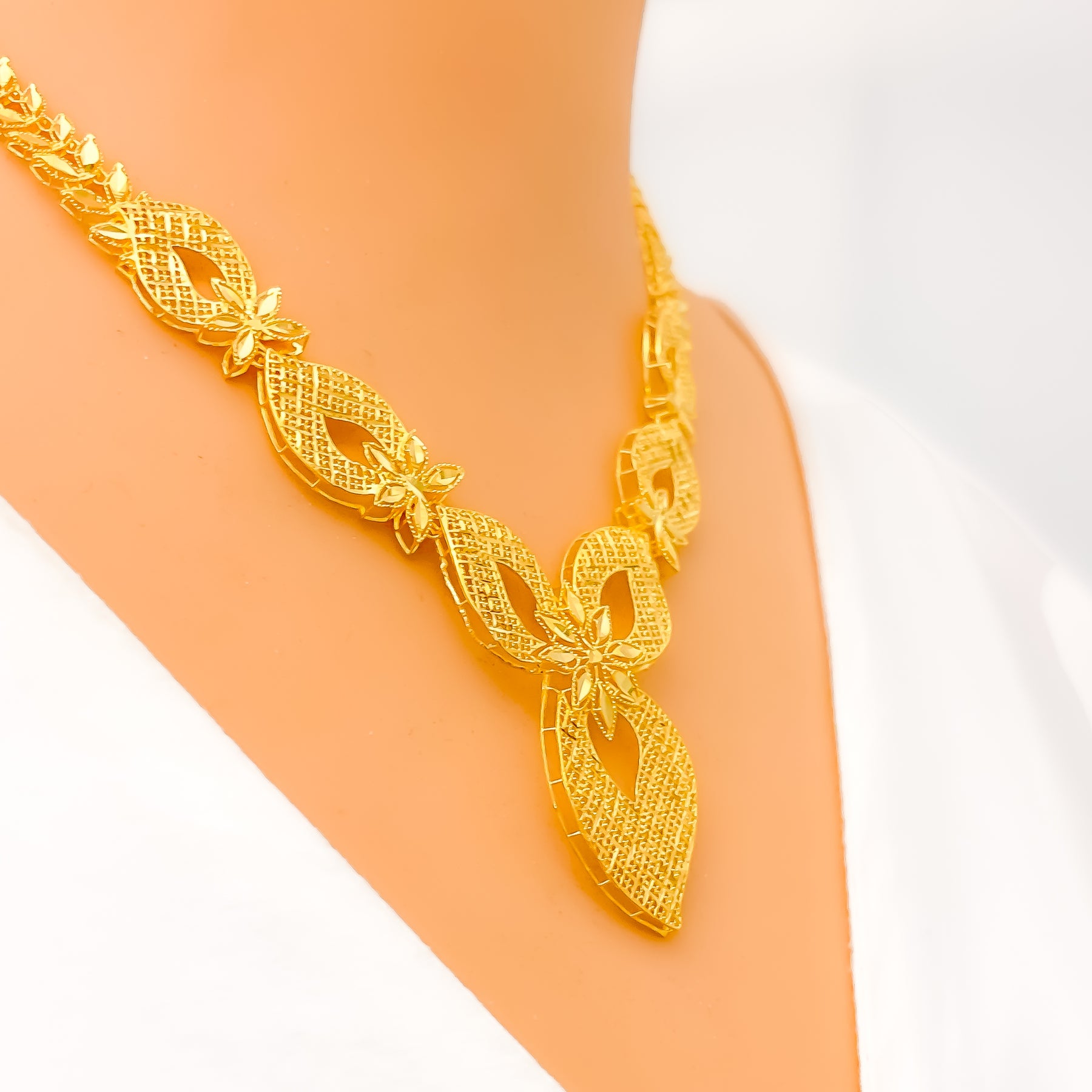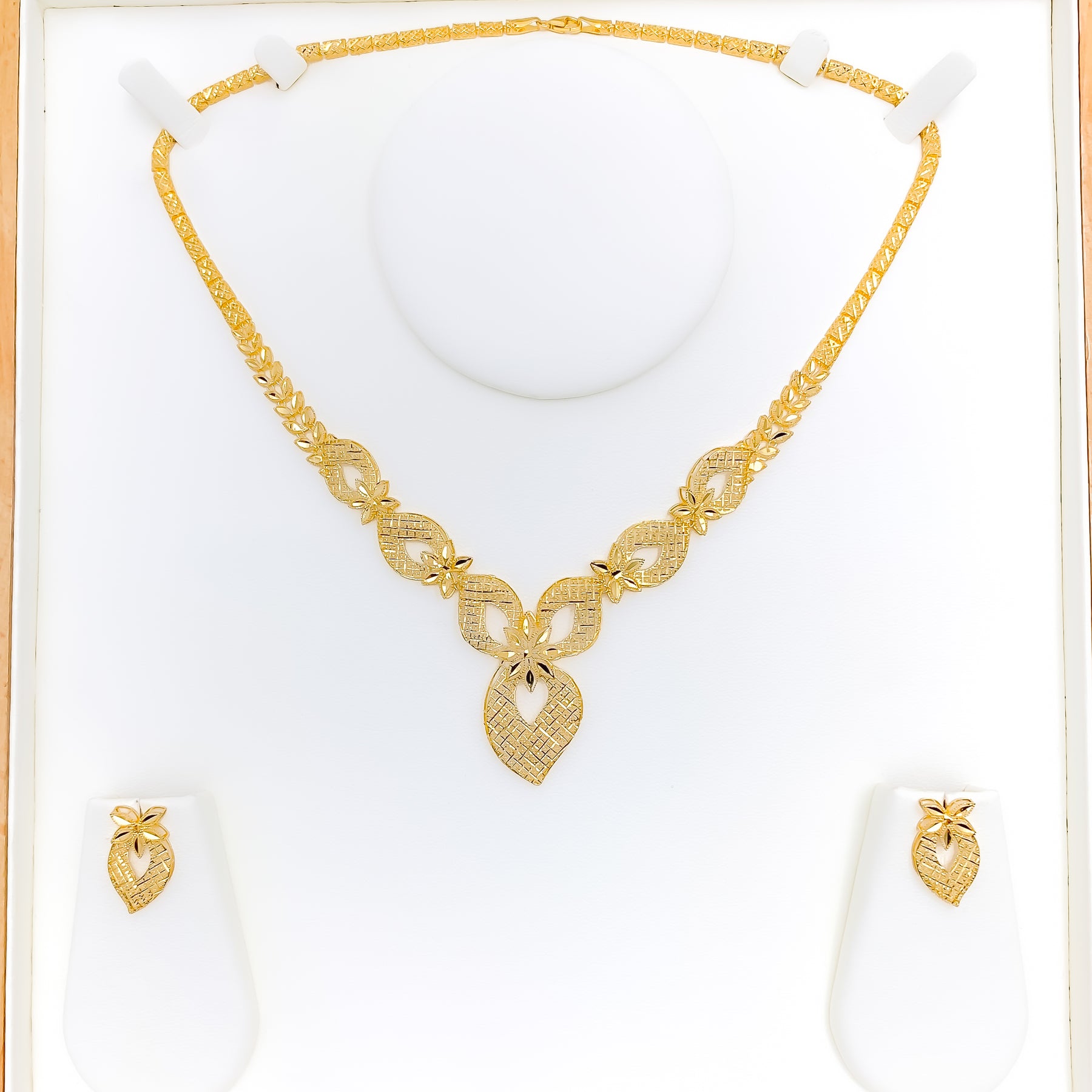 Dazzling Golden Leaf 22k Gold Necklace Set