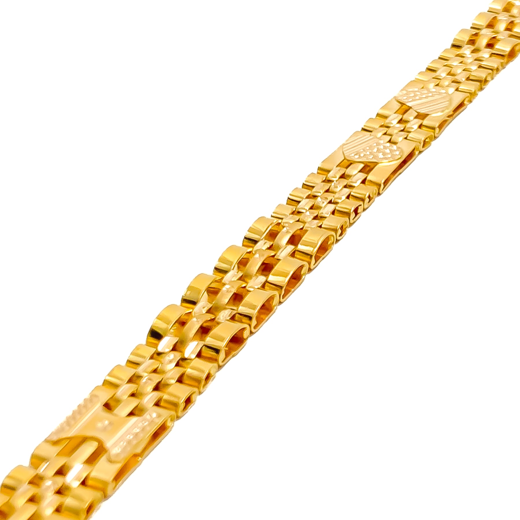 Crafted for distinction, this 22k yellow gold bracelet features a bold box link design that speaks to regal refinement. Weighing 19.9 grams and measuring 8" in length, it fastens securely with an S clasp, delivering both comfort and grandeur in a timeless, masculine silhouette.