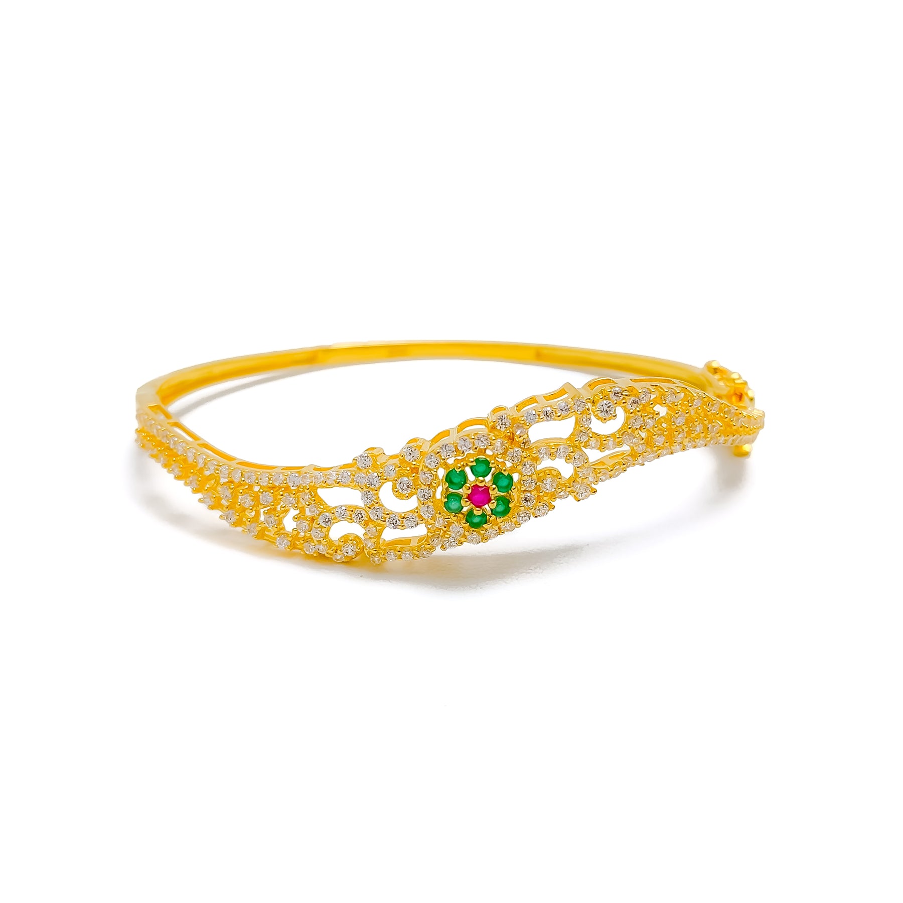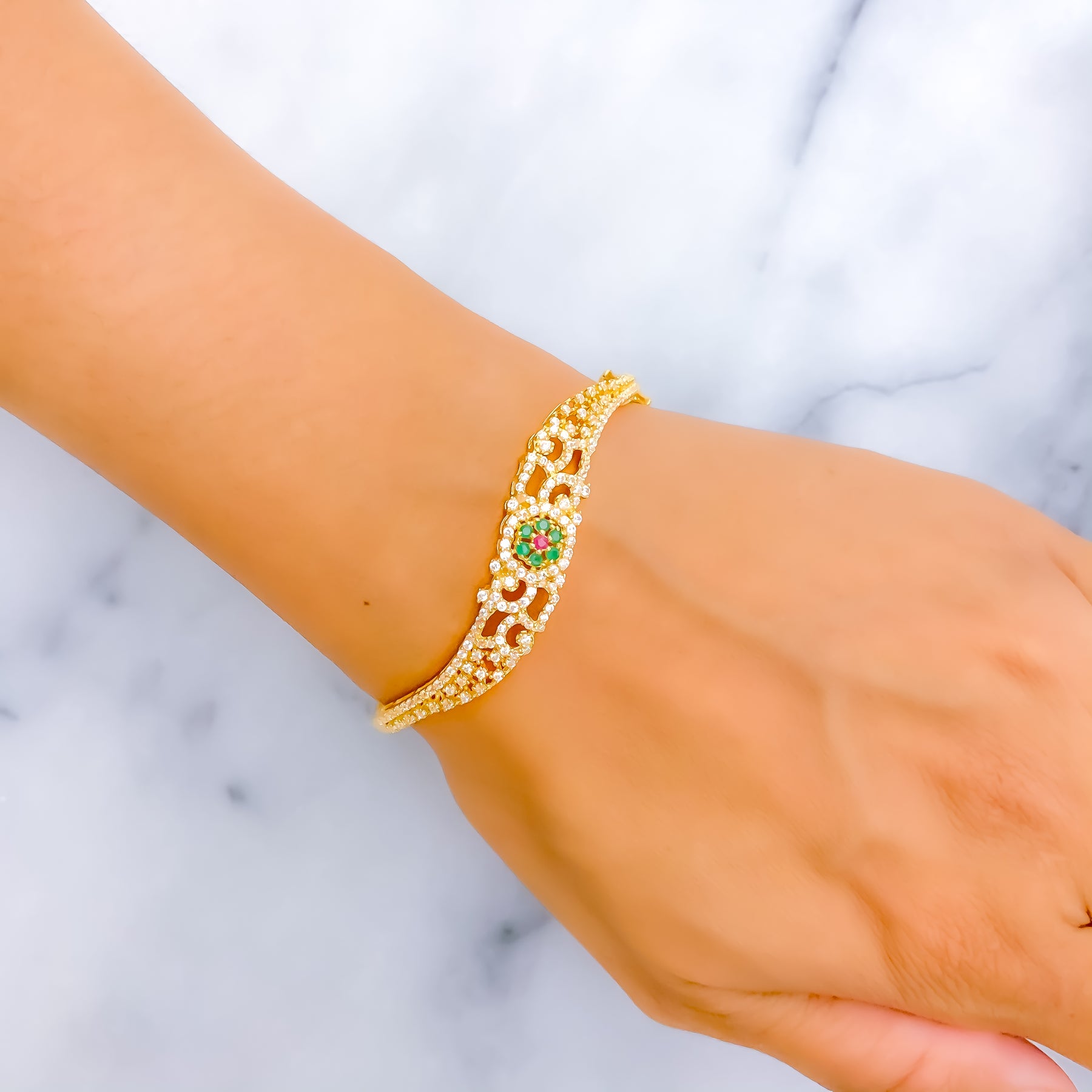 Palatial Colorful 22k Gold CZ Bangle Bracelet