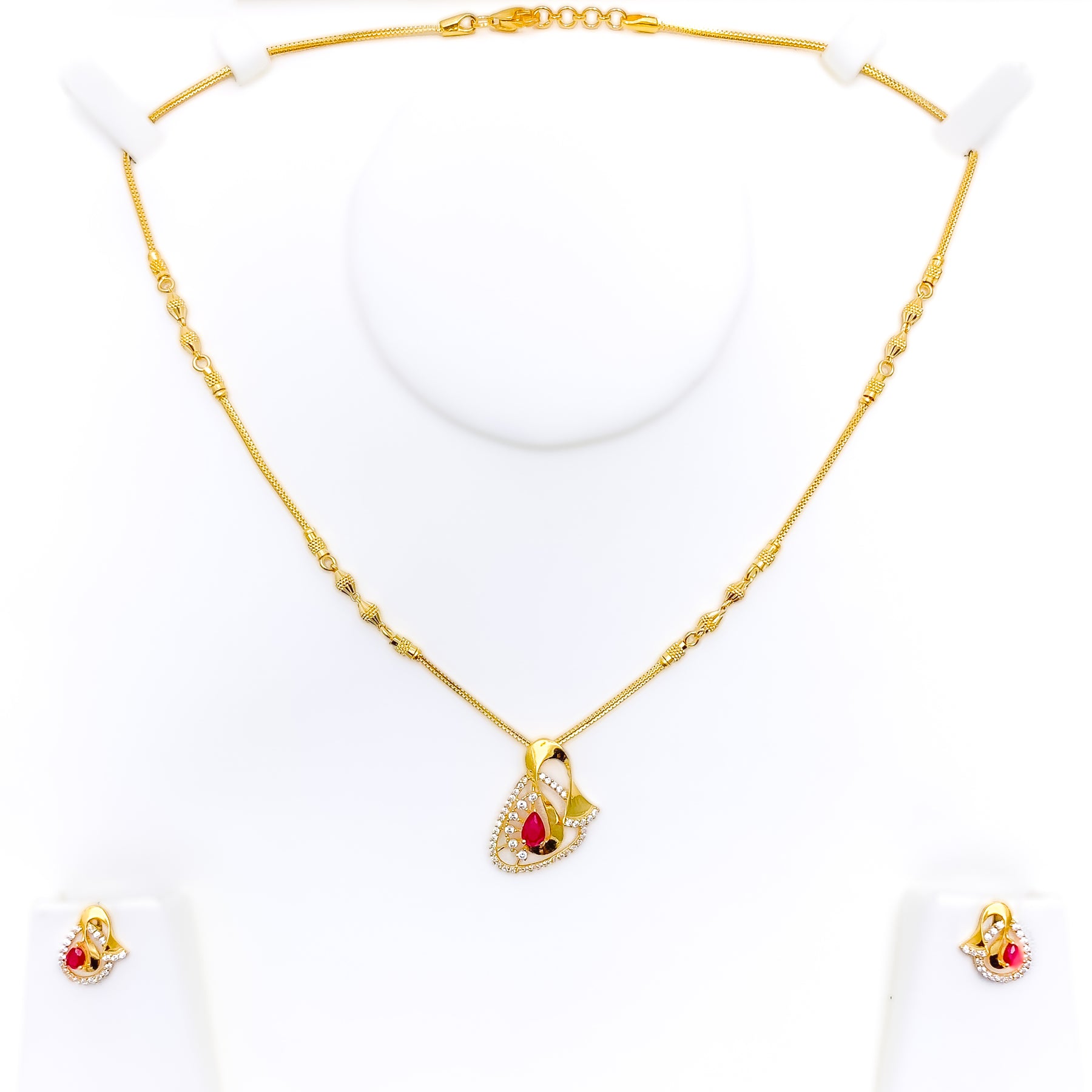 Reflective Captivating 22k Gold CZ Necklace Set