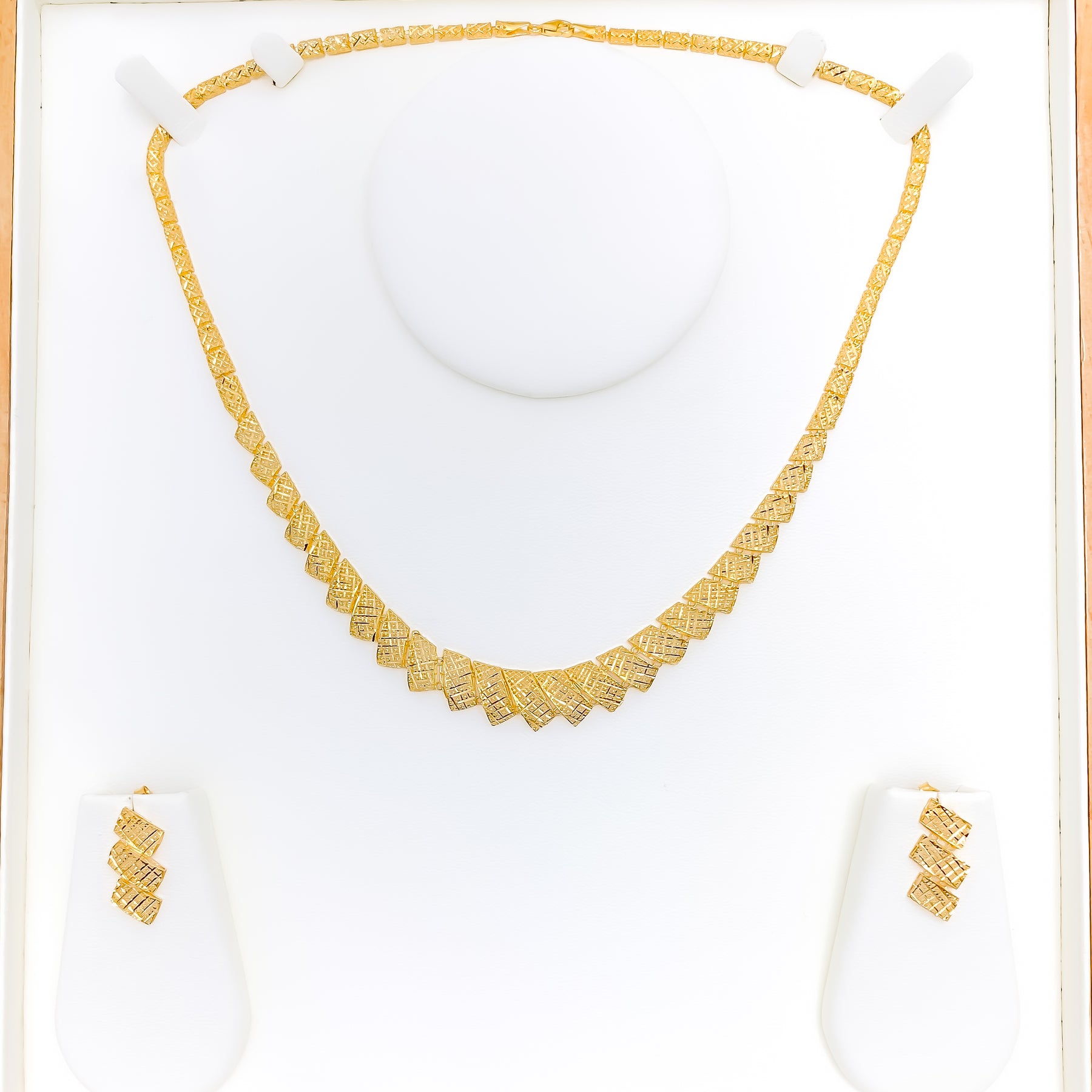 Dazzling Golden Leaf 22k Gold Necklace Set