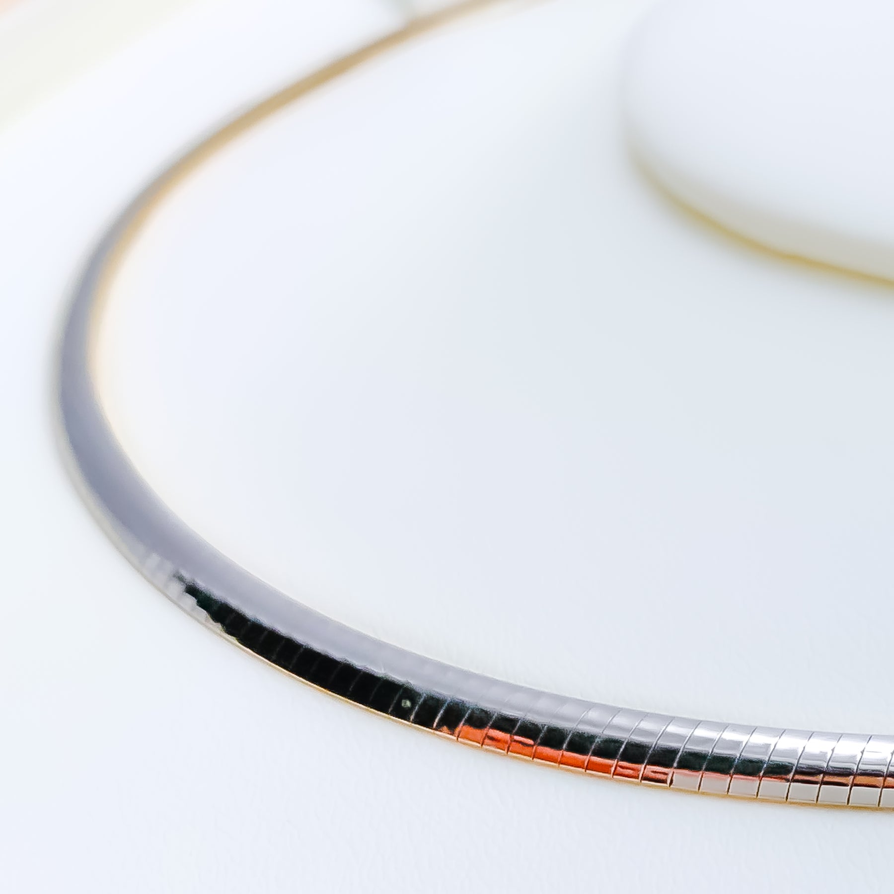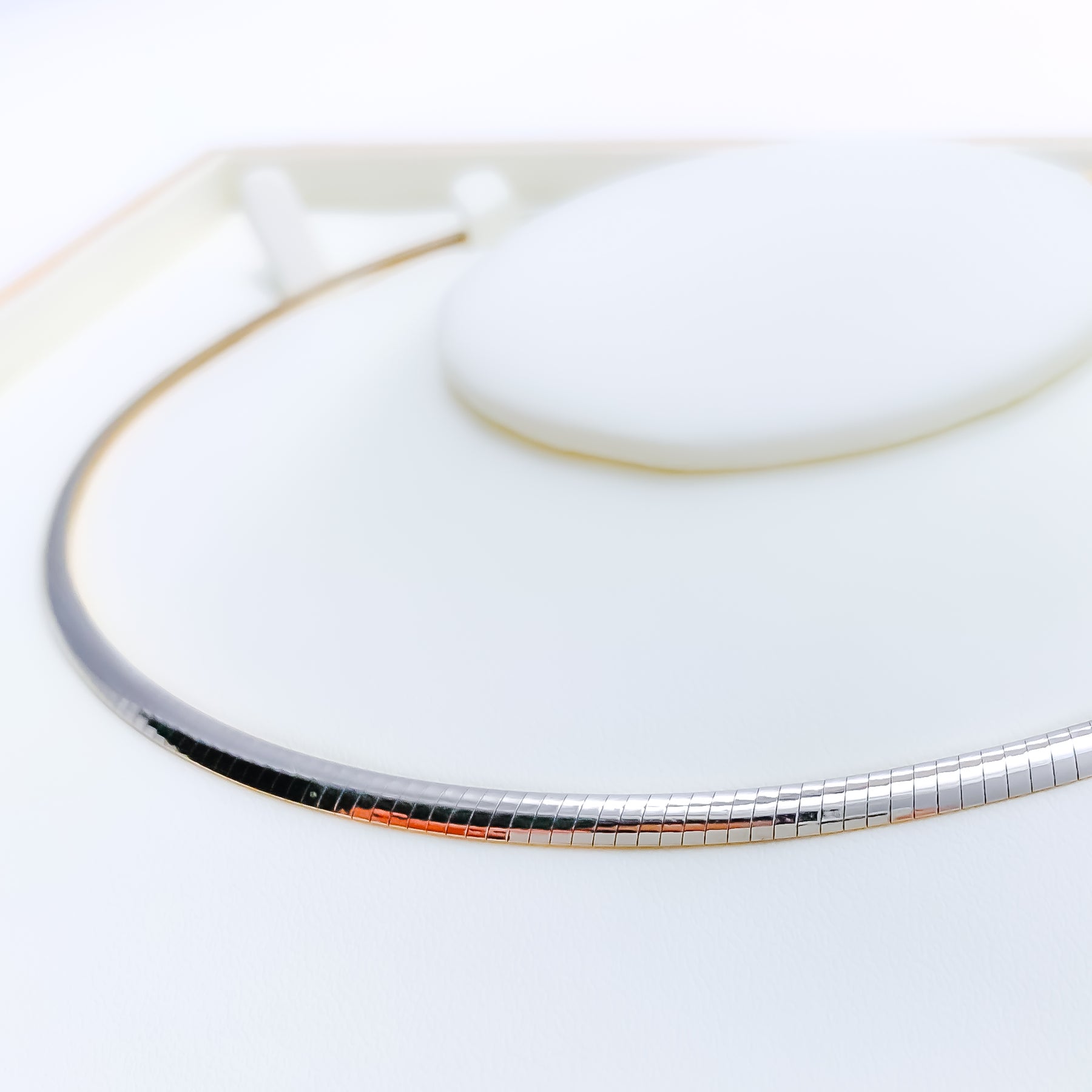 Innovative and stylish, this 18k gold reversible necklace weighs 16.6 grams and features both yellow and white gold finishes for versatile wear. Measuring 16" and secured with a lobster lock, it offers two distinct looks in one. A unique piece that blends bold design with everyday elegance.