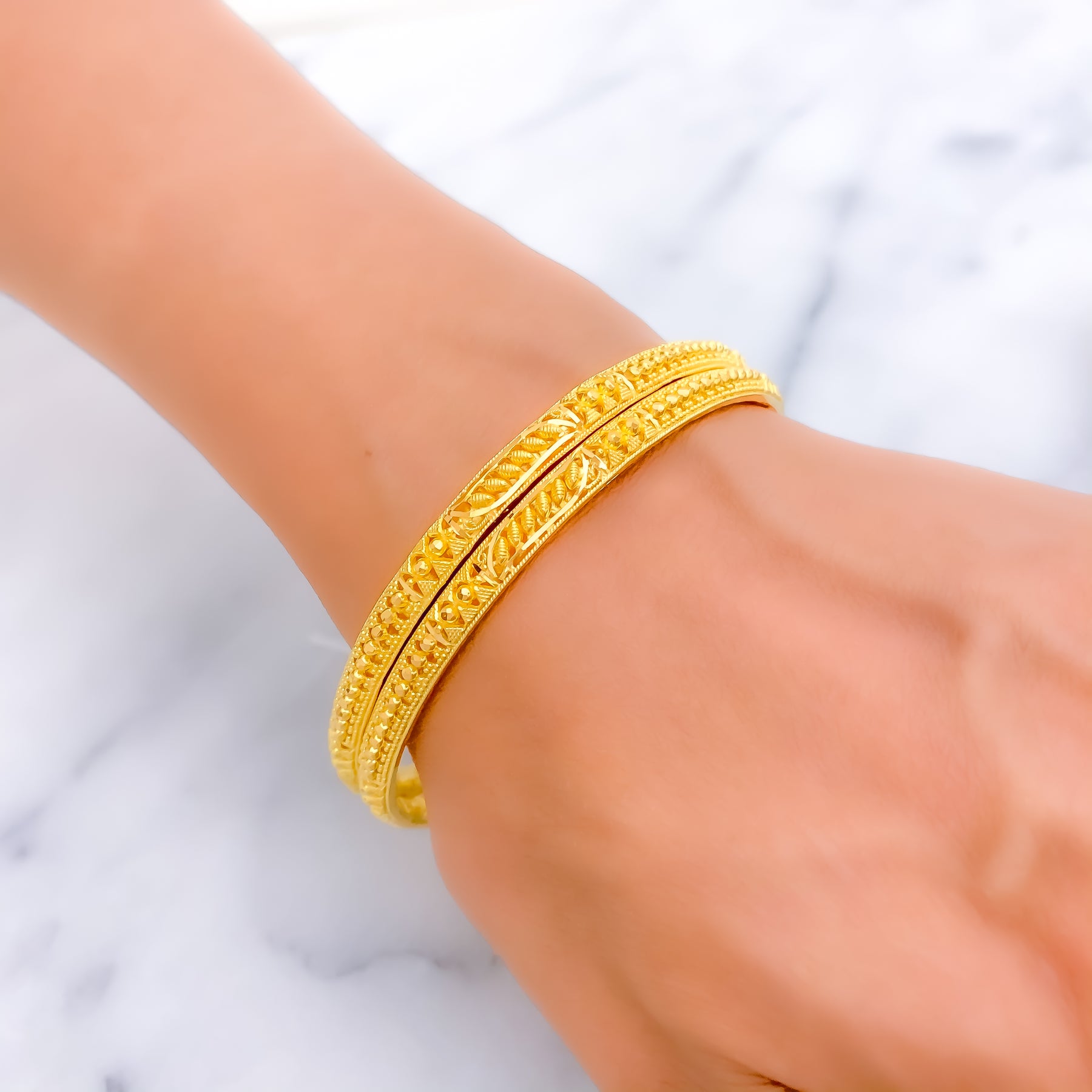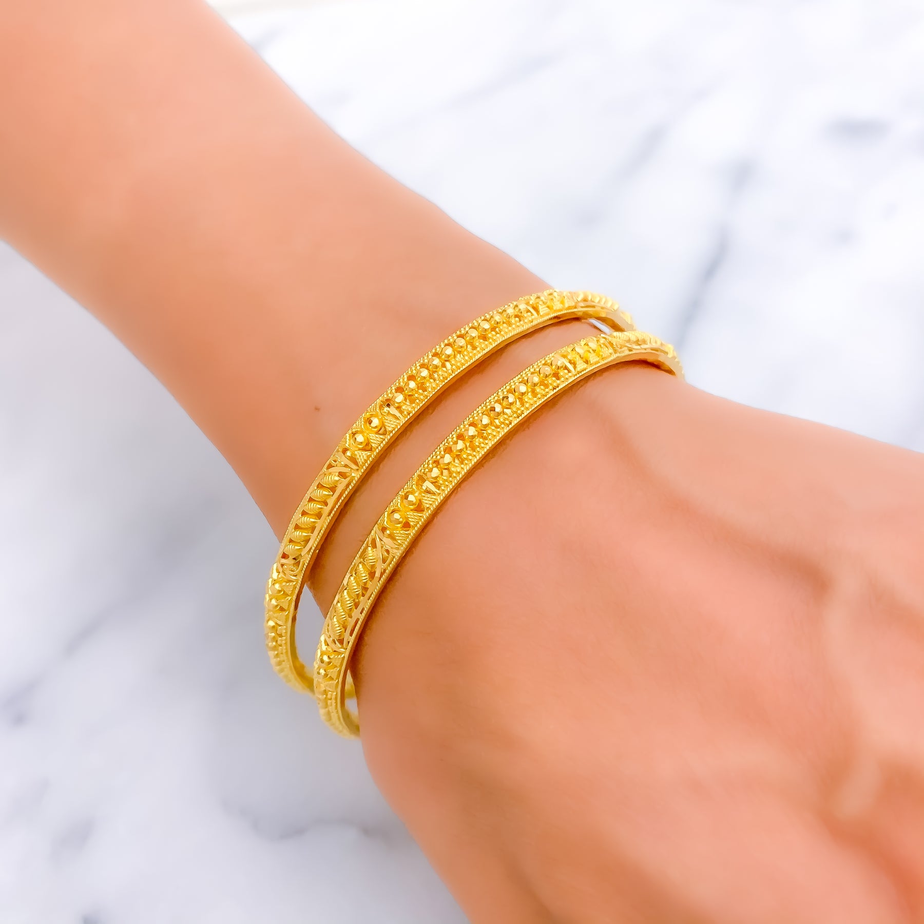 Classic Adorned 22k Gold Pipe Bangles