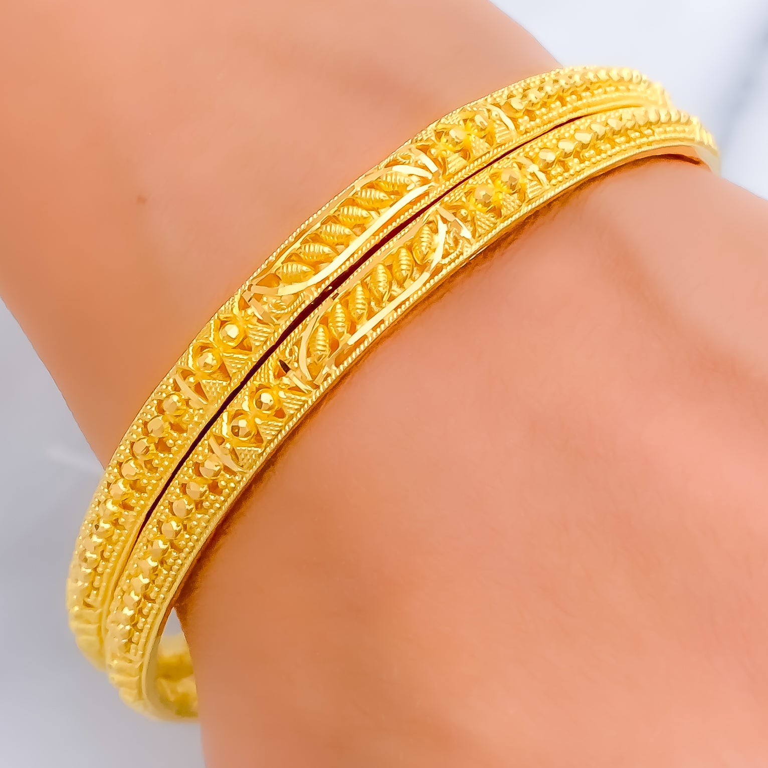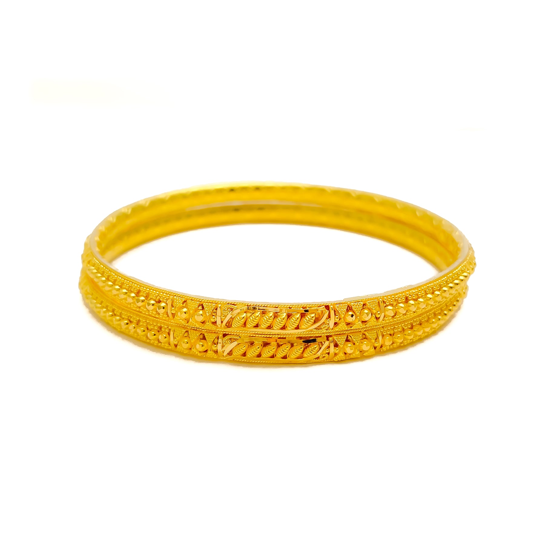 Brilliant Leaf Adorned 22k Gold Bangle Pair
