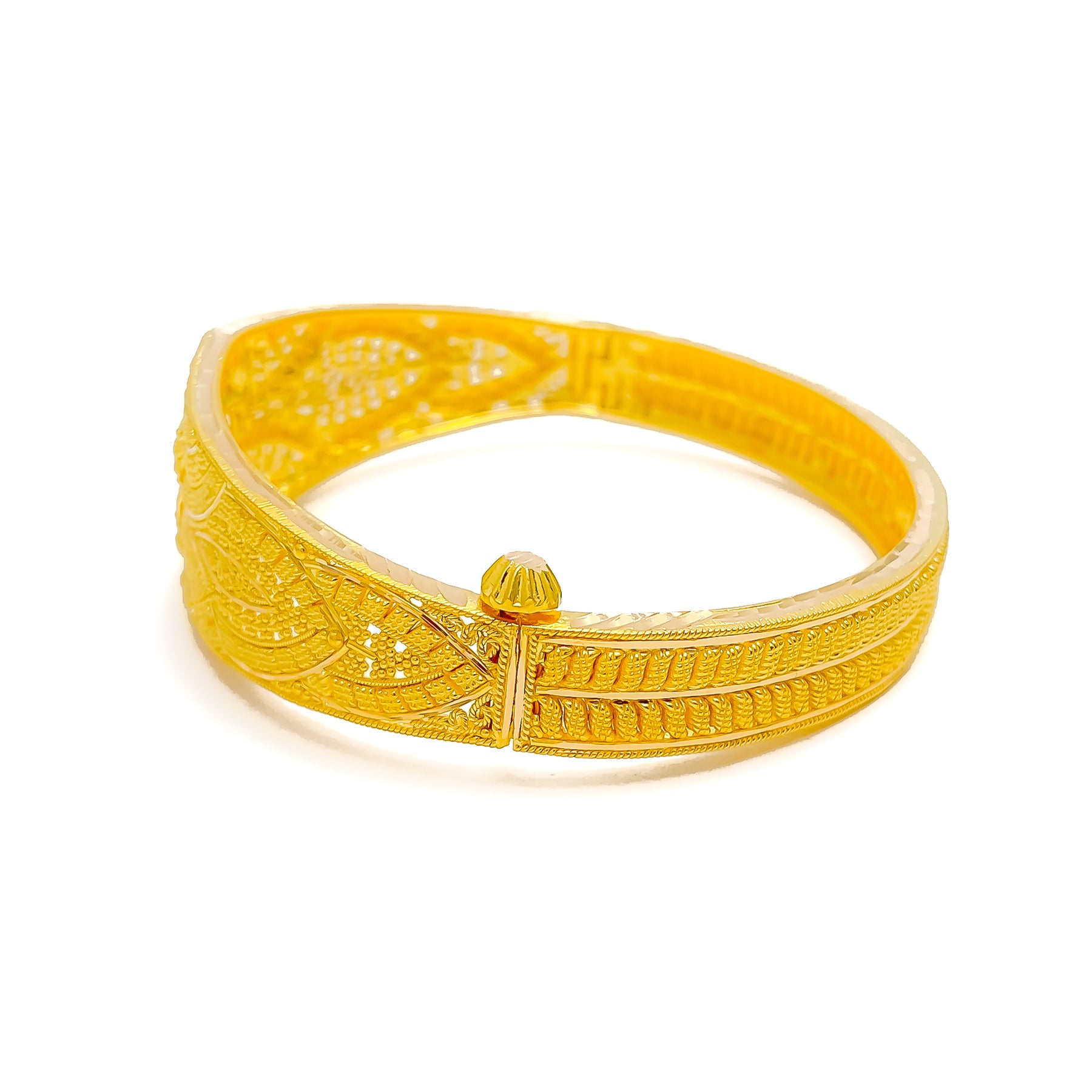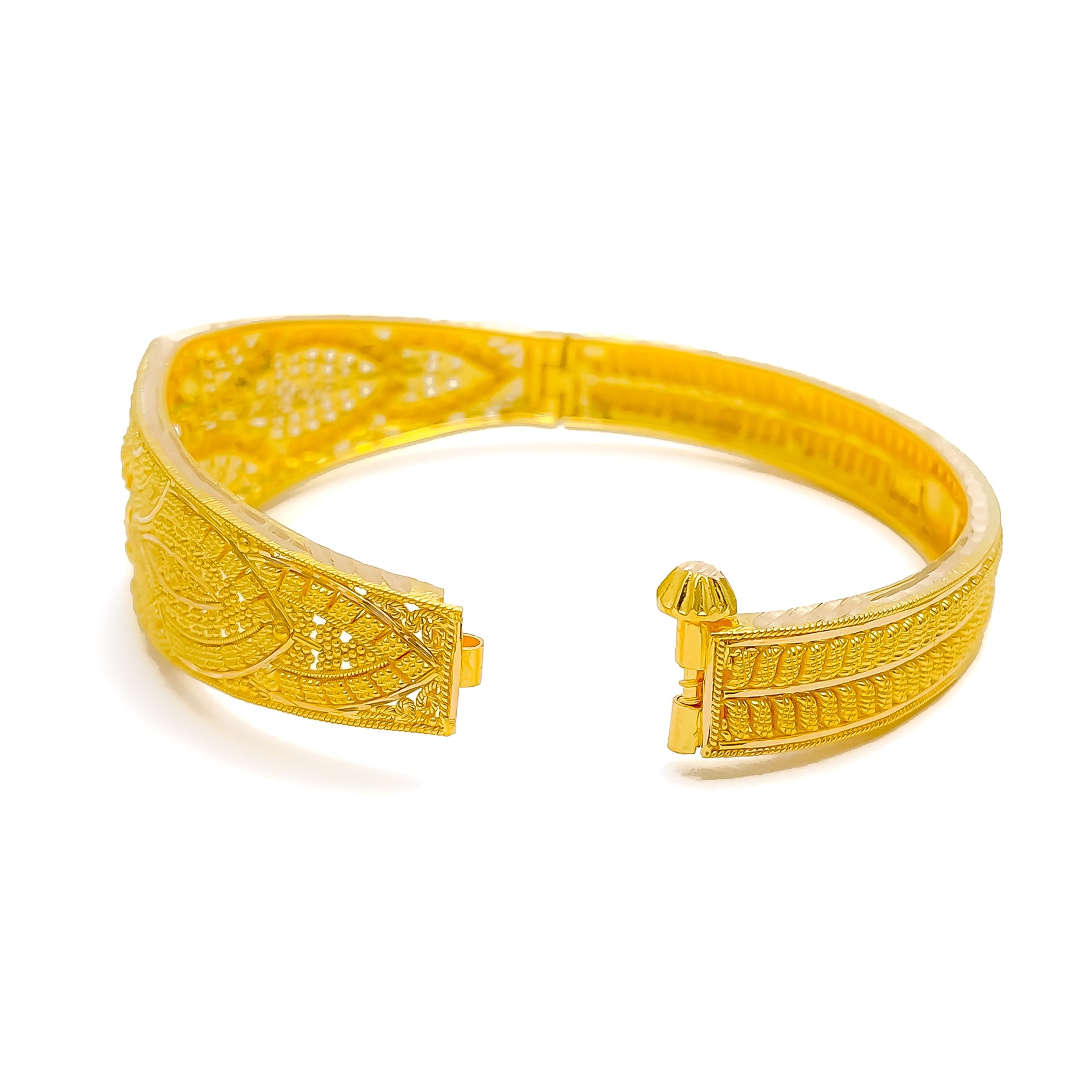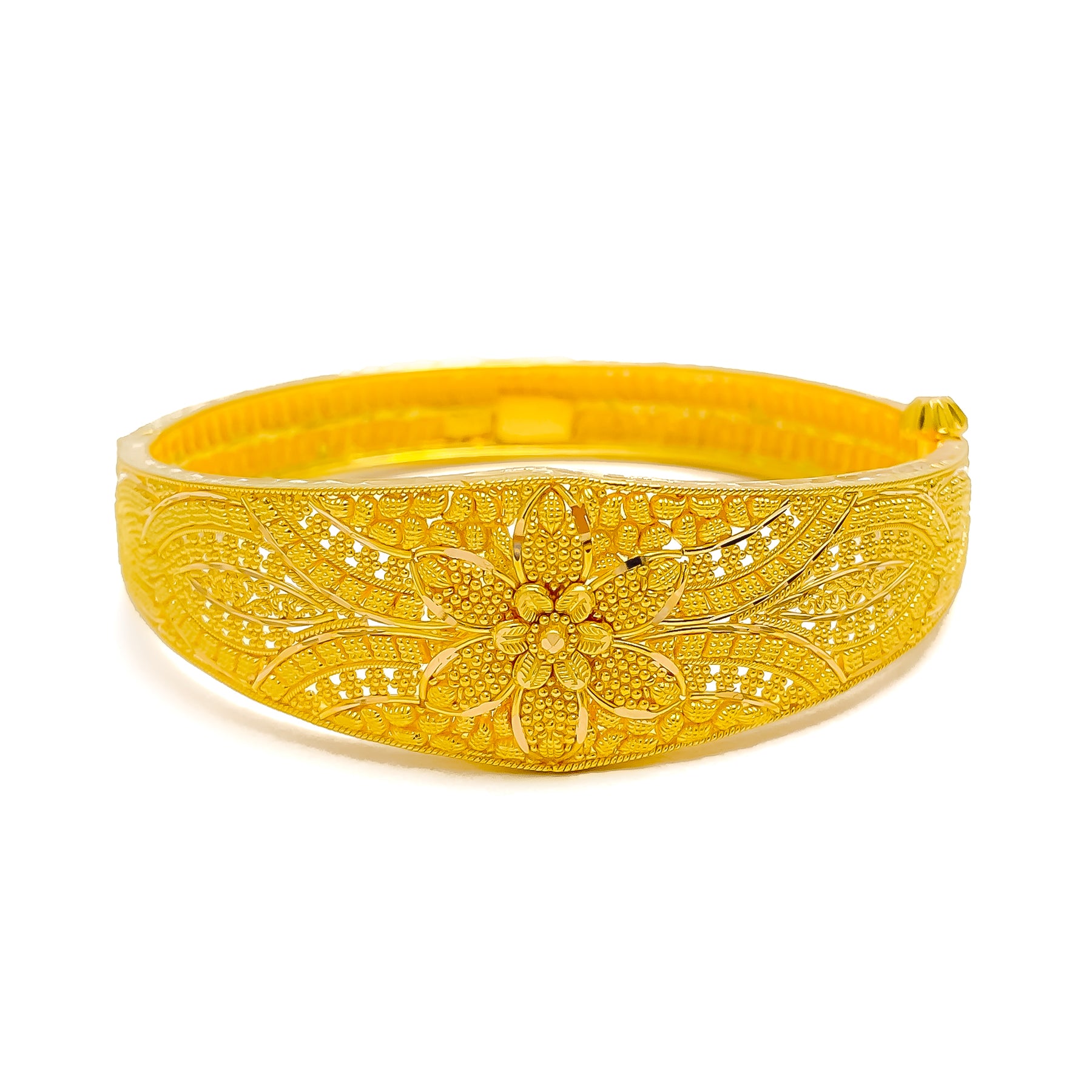 Floral Leaf Adorned 22k Gold Bangle Bracelet