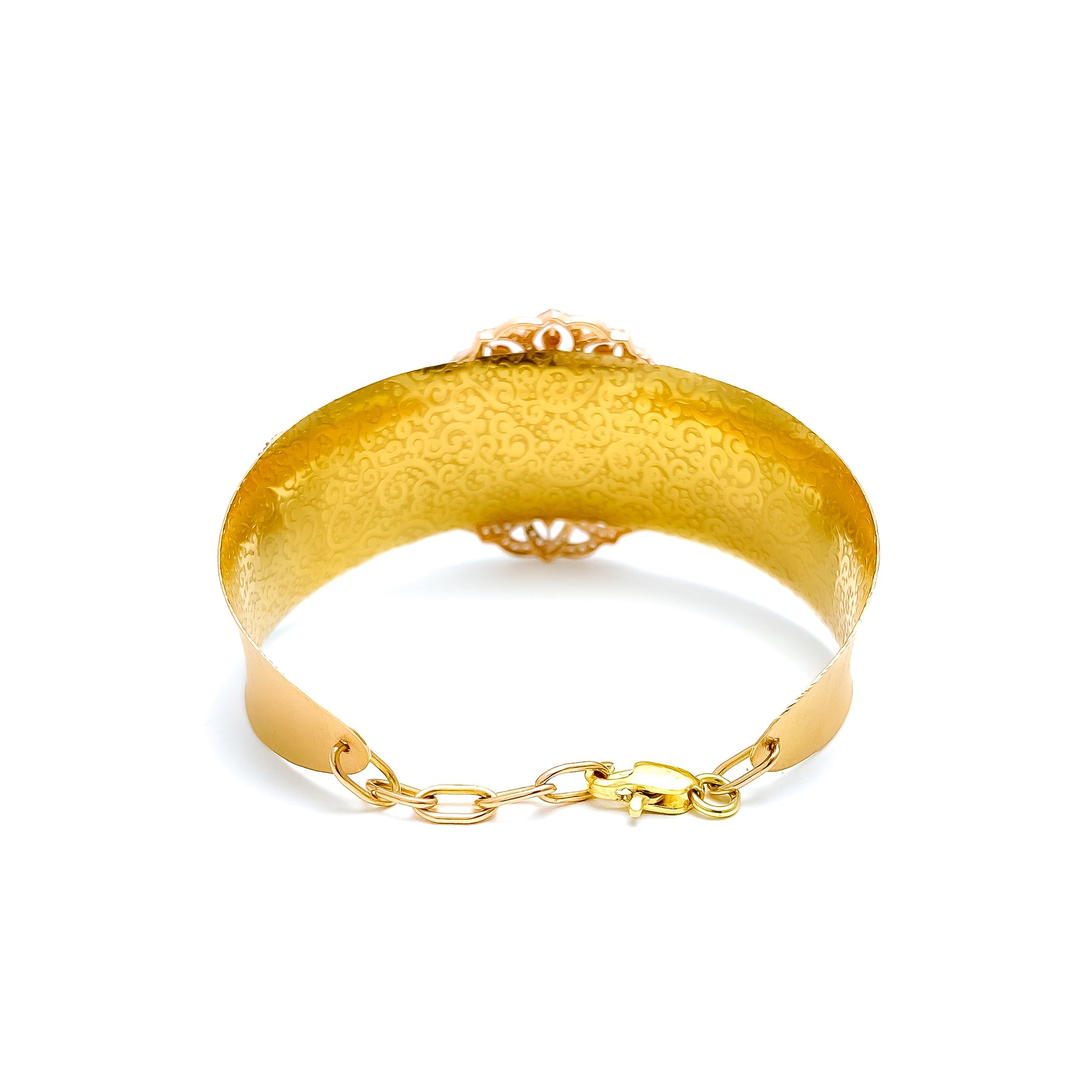 Impressive Shimmering Flower 18k Gold CZ Bangle Bracelet