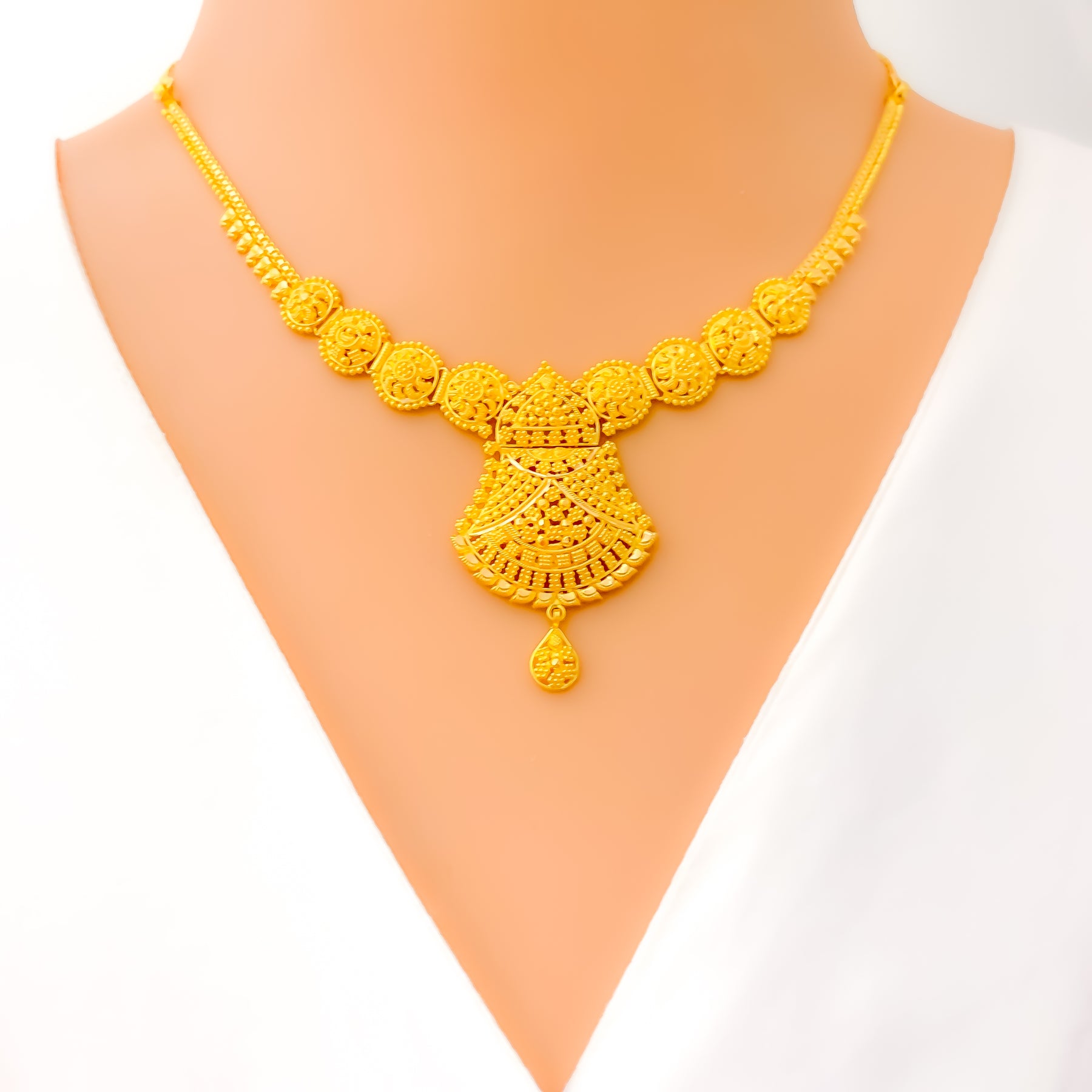 Intricate Festive Floral 22k Gold Necklace Set