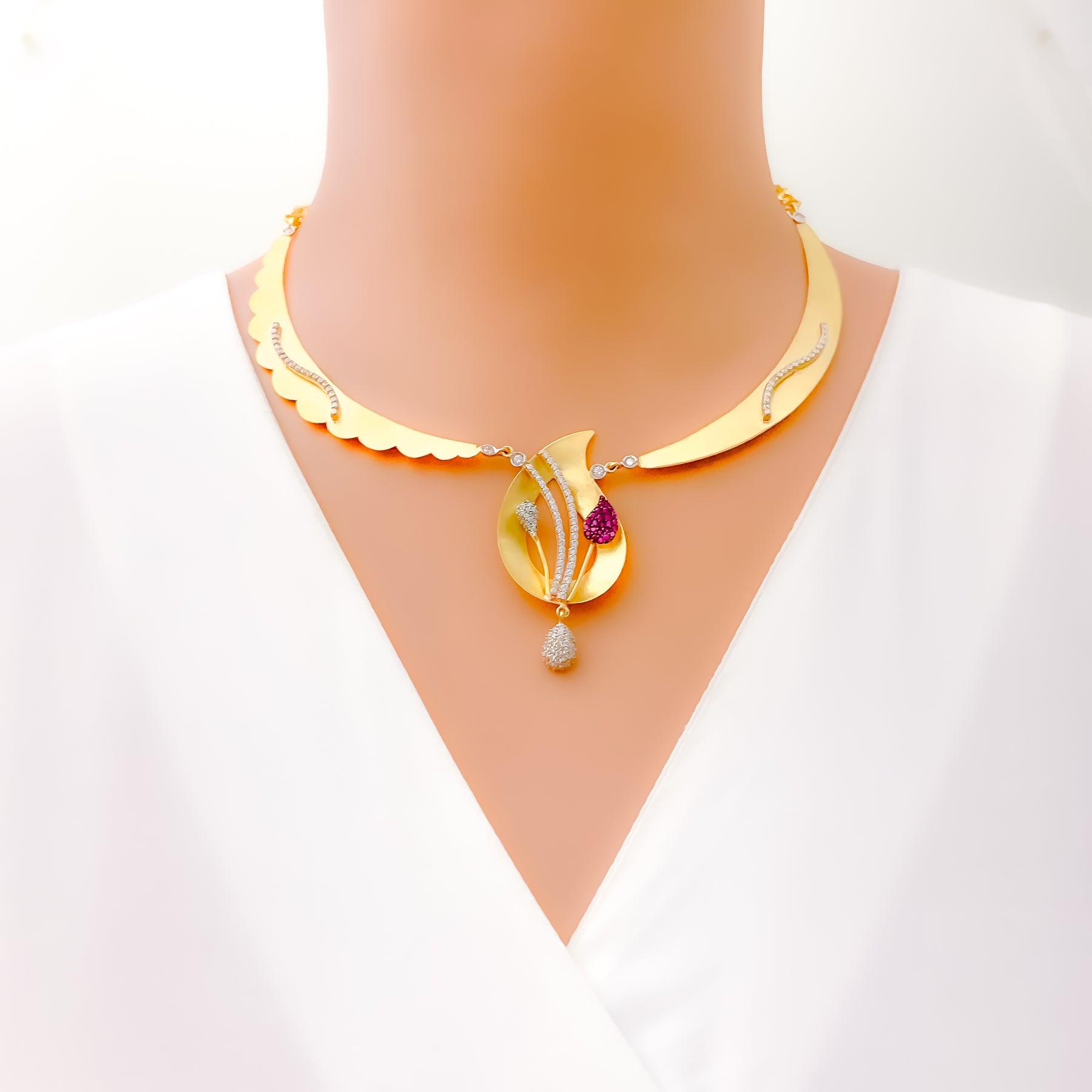 Opulent Paisley Adorned 18k Gold CZ Necklace Set