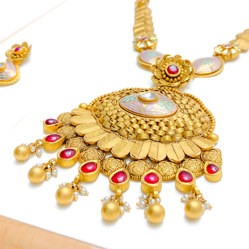 Traditional Alluring Flower Accented 22k Gold Long Antique Set