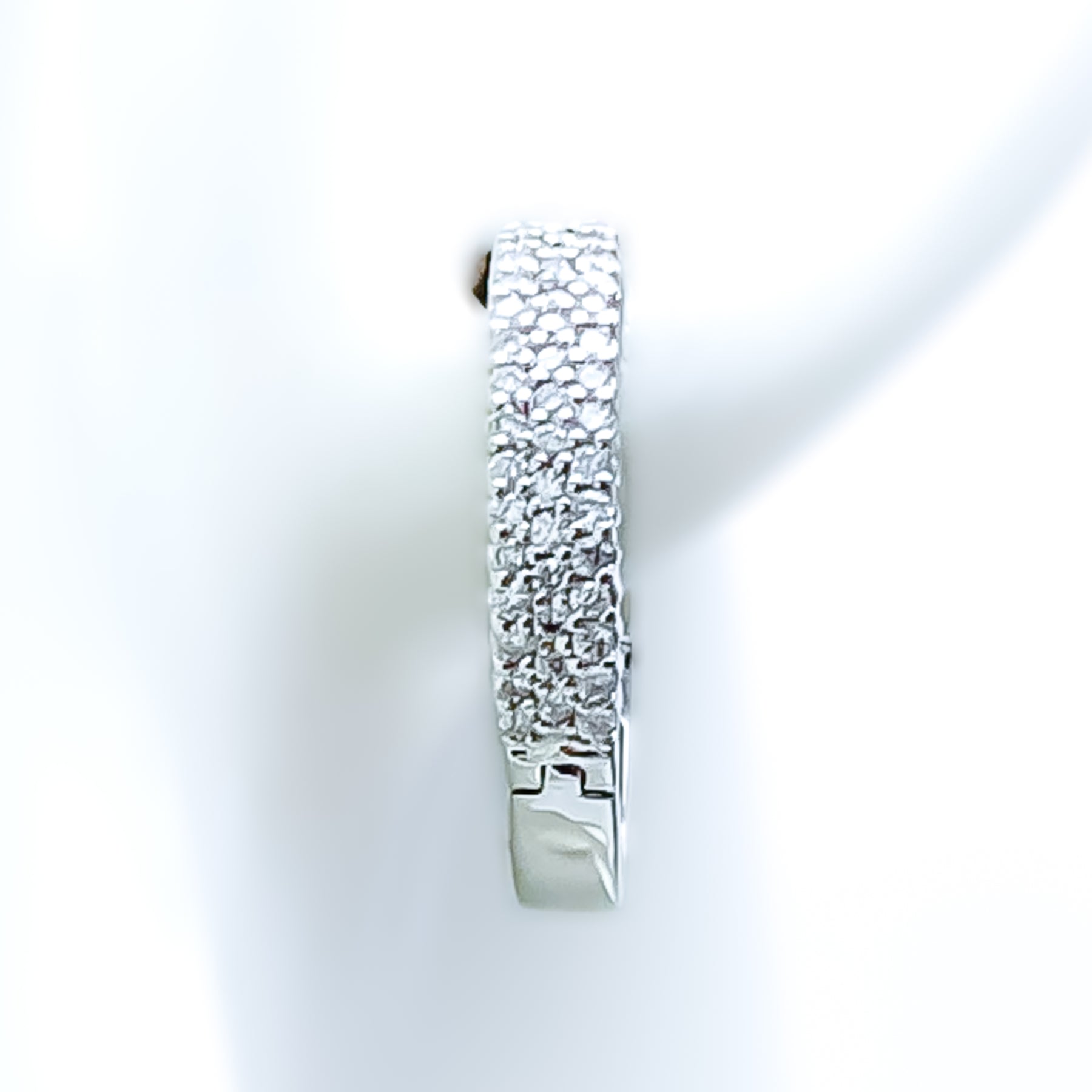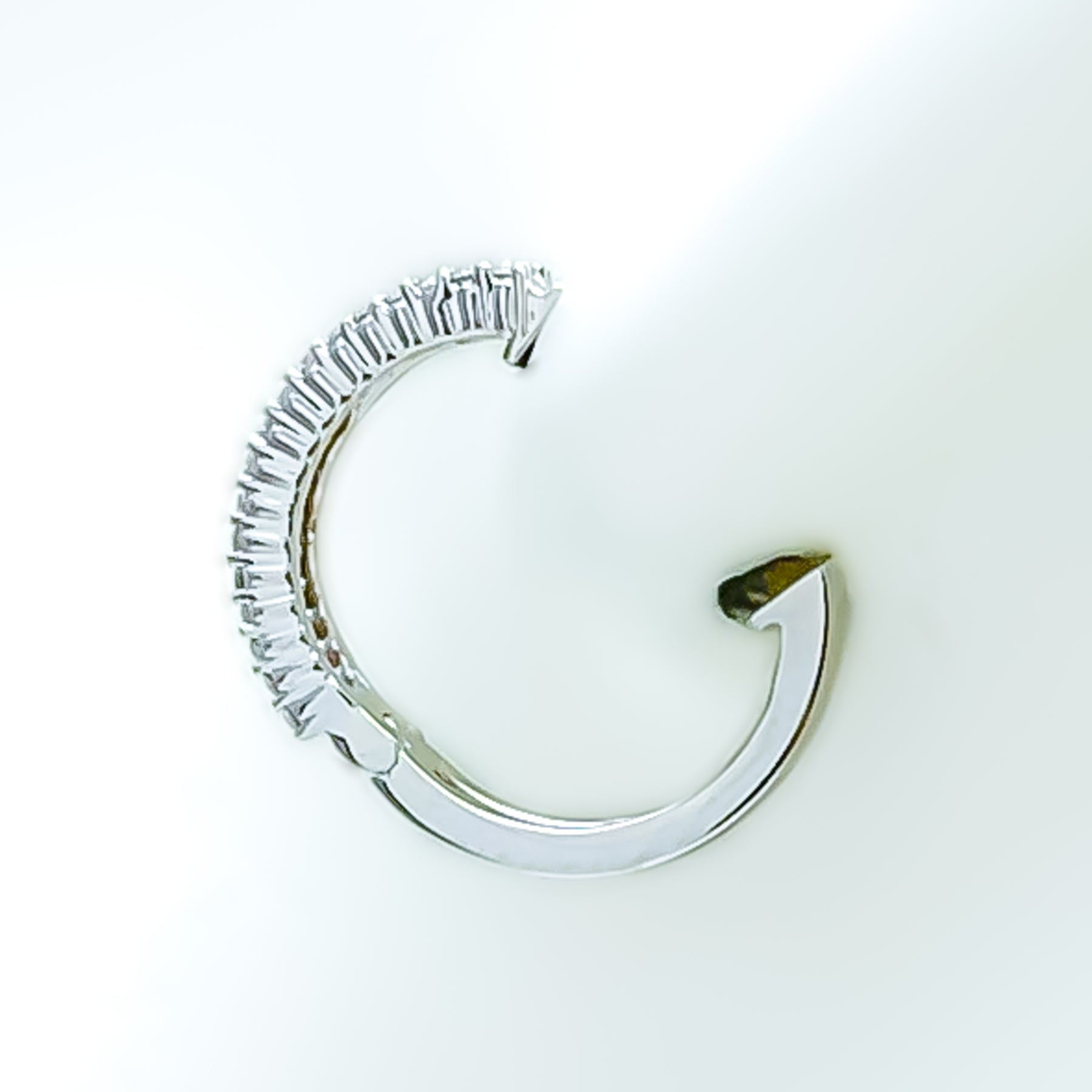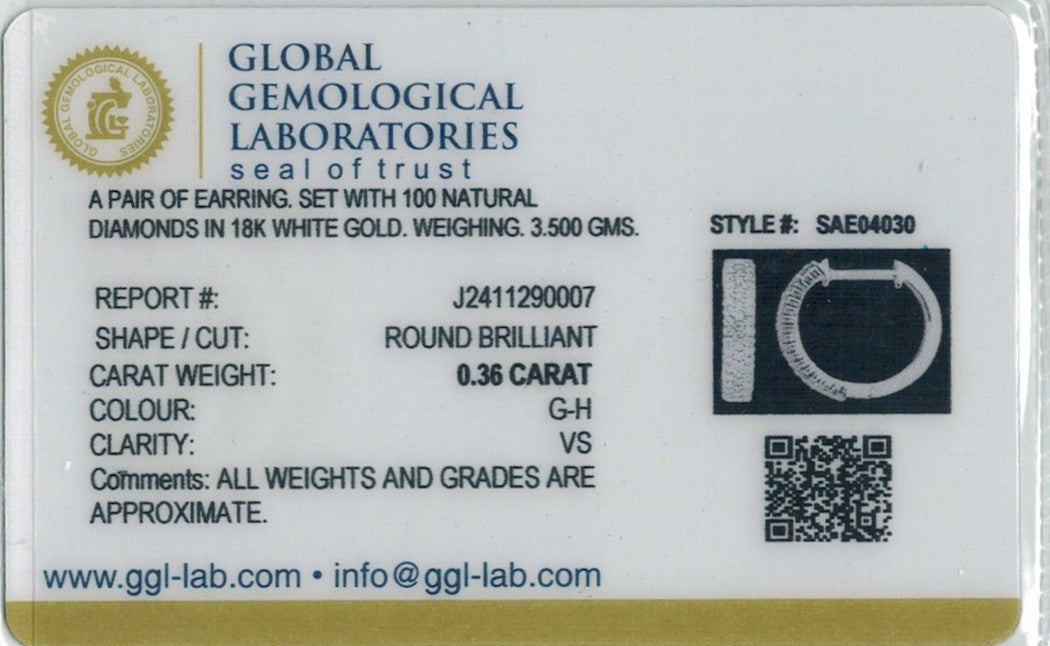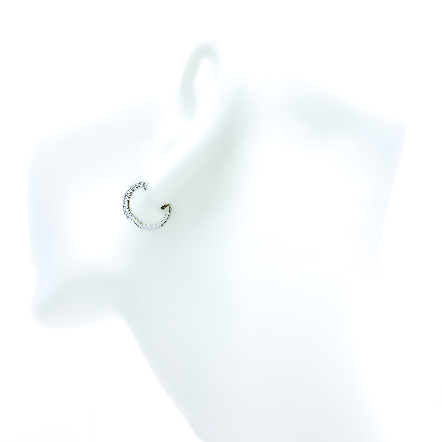 Gracefully compact, these 18k white gold Bali earrings weigh 3.5 grams and feature 0.36ct of twinkling round brilliant-cut diamonds in G-H color and VS clarity. Their 0.5" length offers a subtle, refined look, while the secure push lock ensures comfort and stability. GGL certified, this pair is ideal for everyday elegance or understated evening sparkle—perfect for those who appreciate timeless luxury in a petite form.