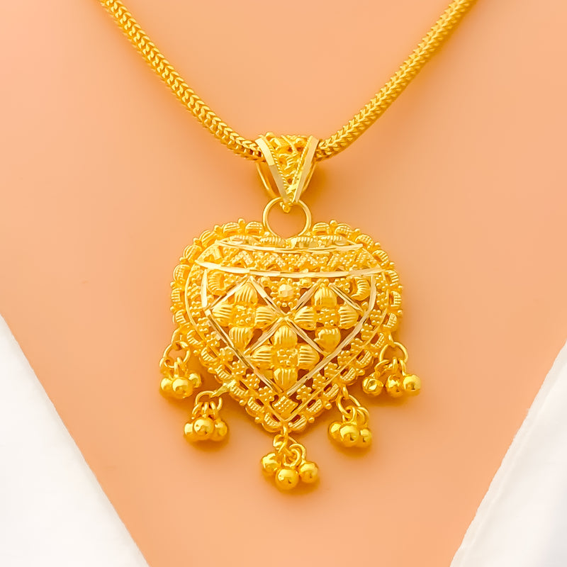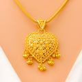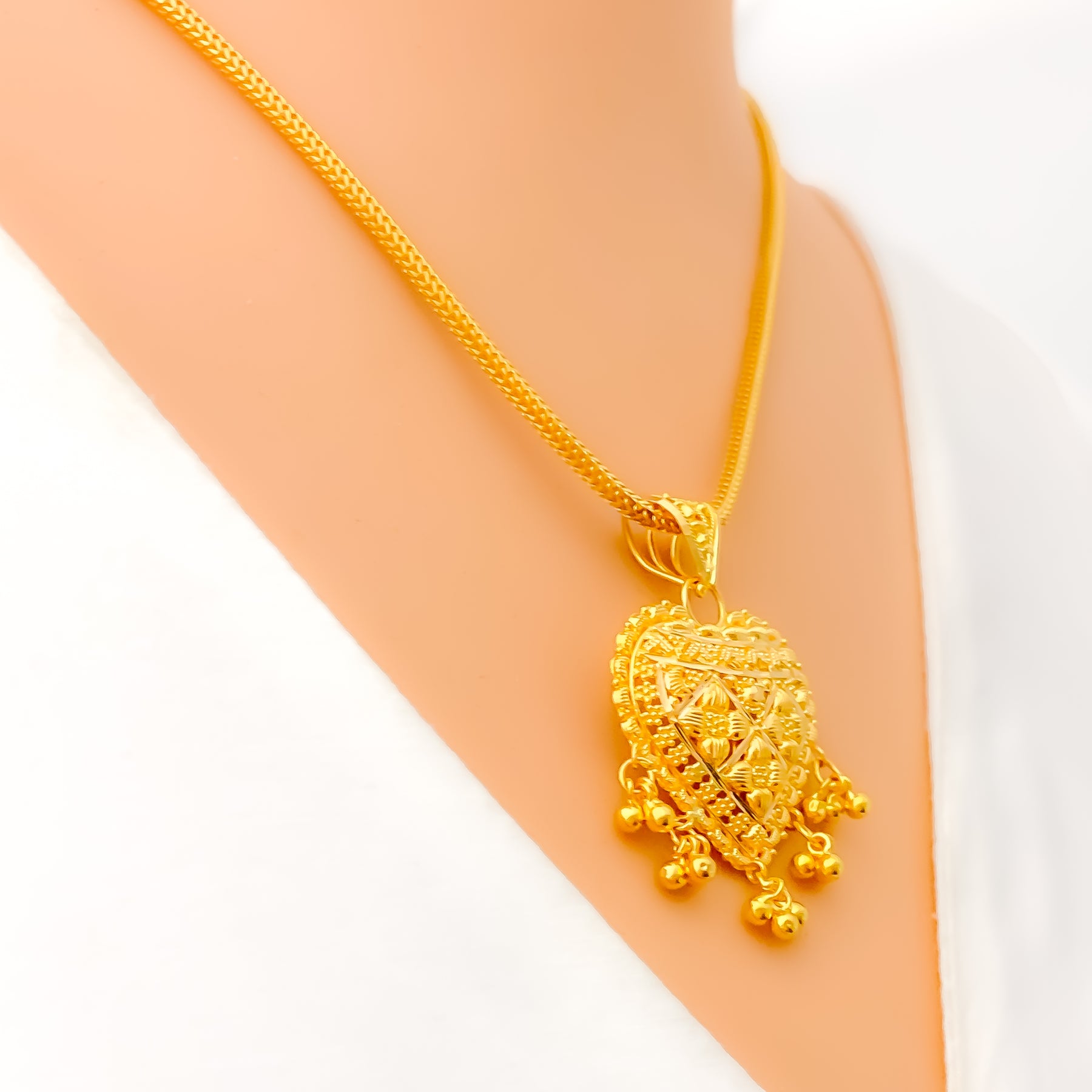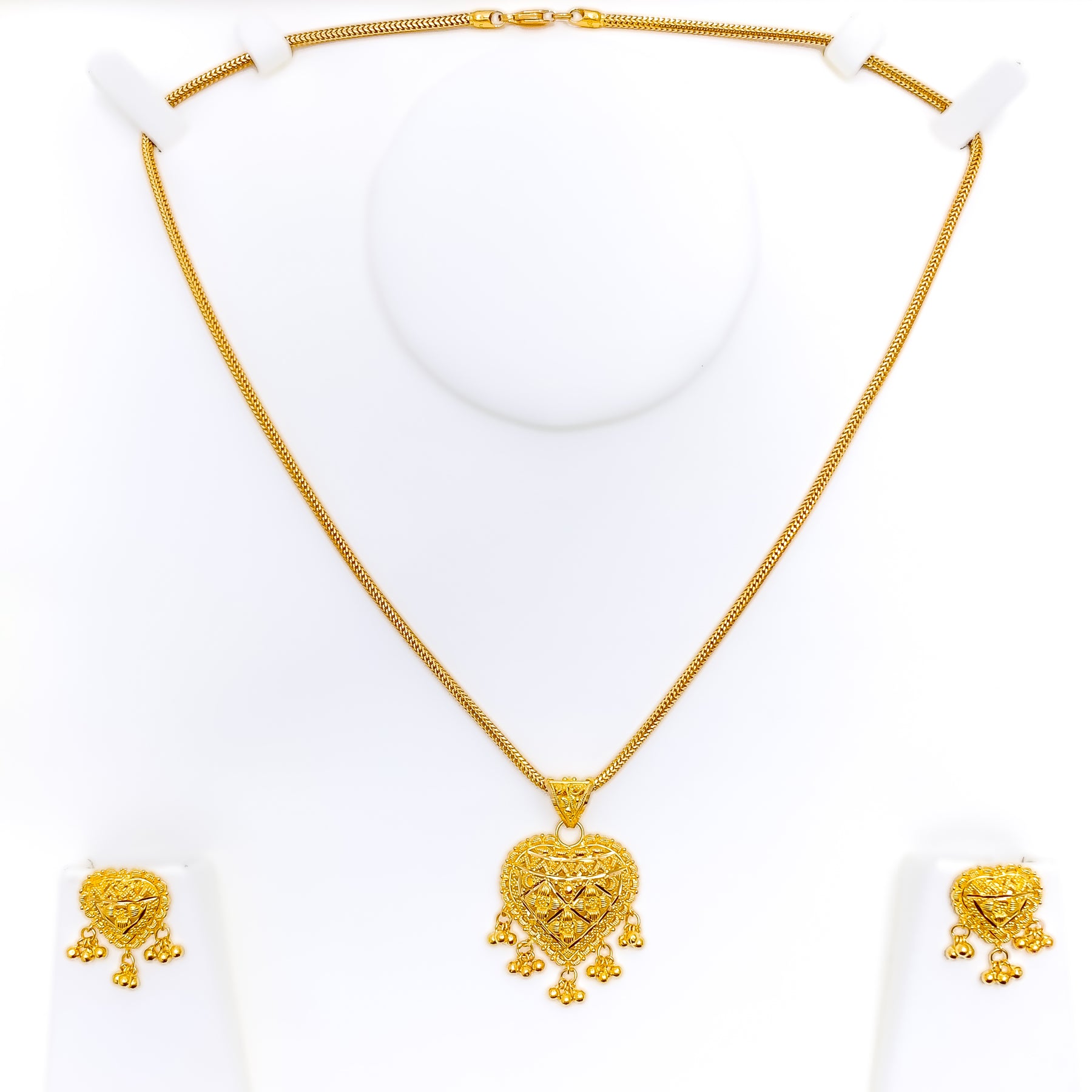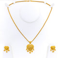 Fancy Beaded Marquise Leaf 22k Gold Pendant Set