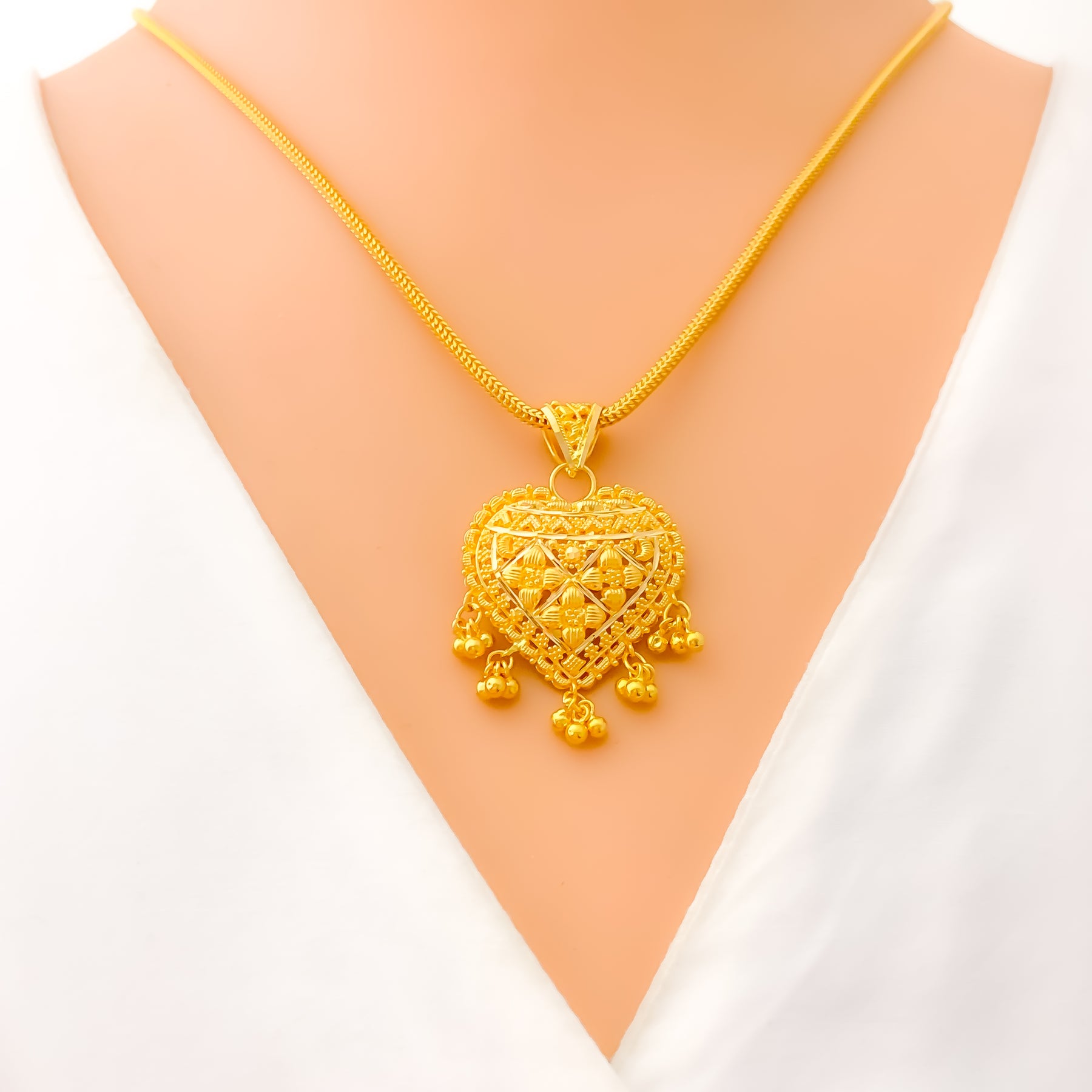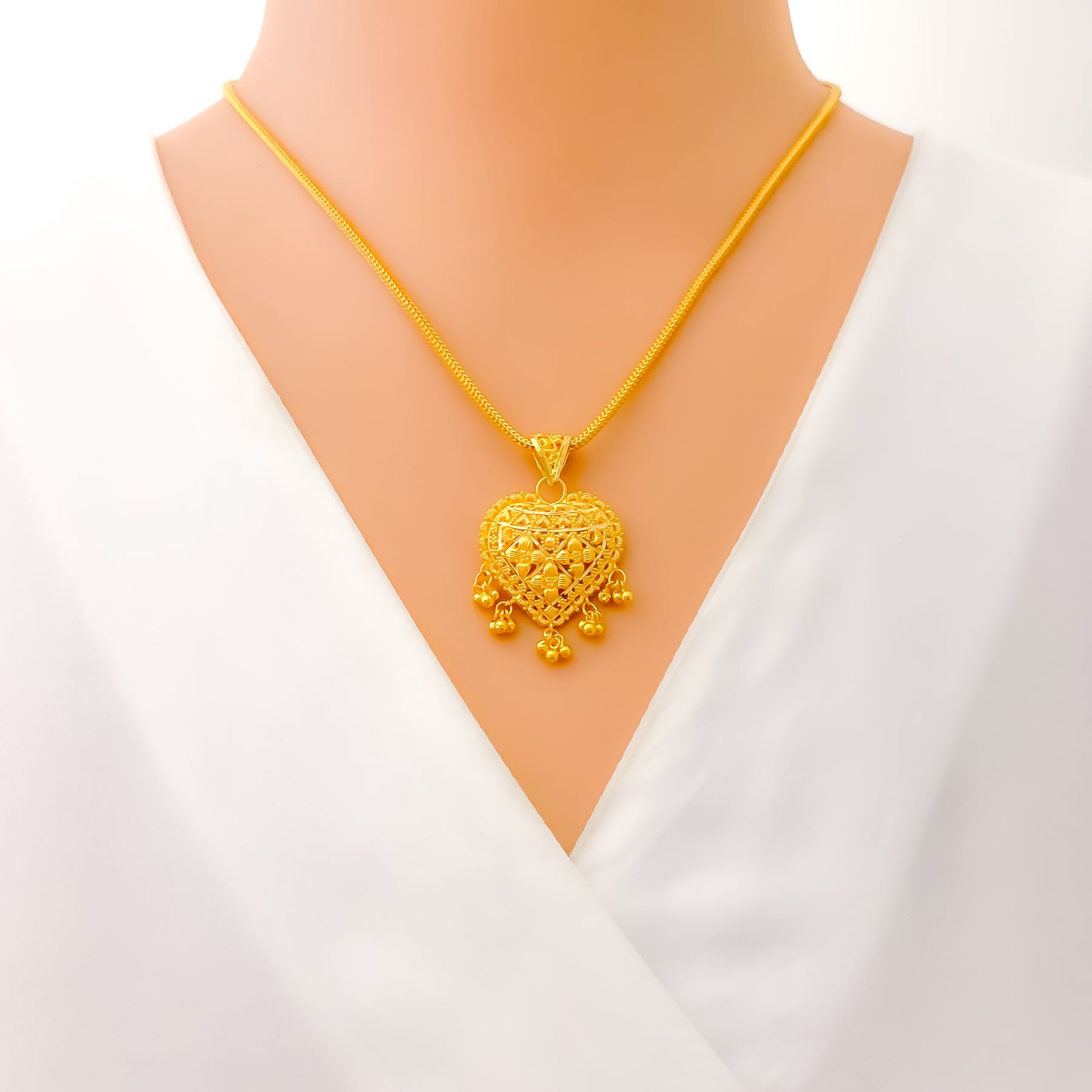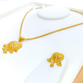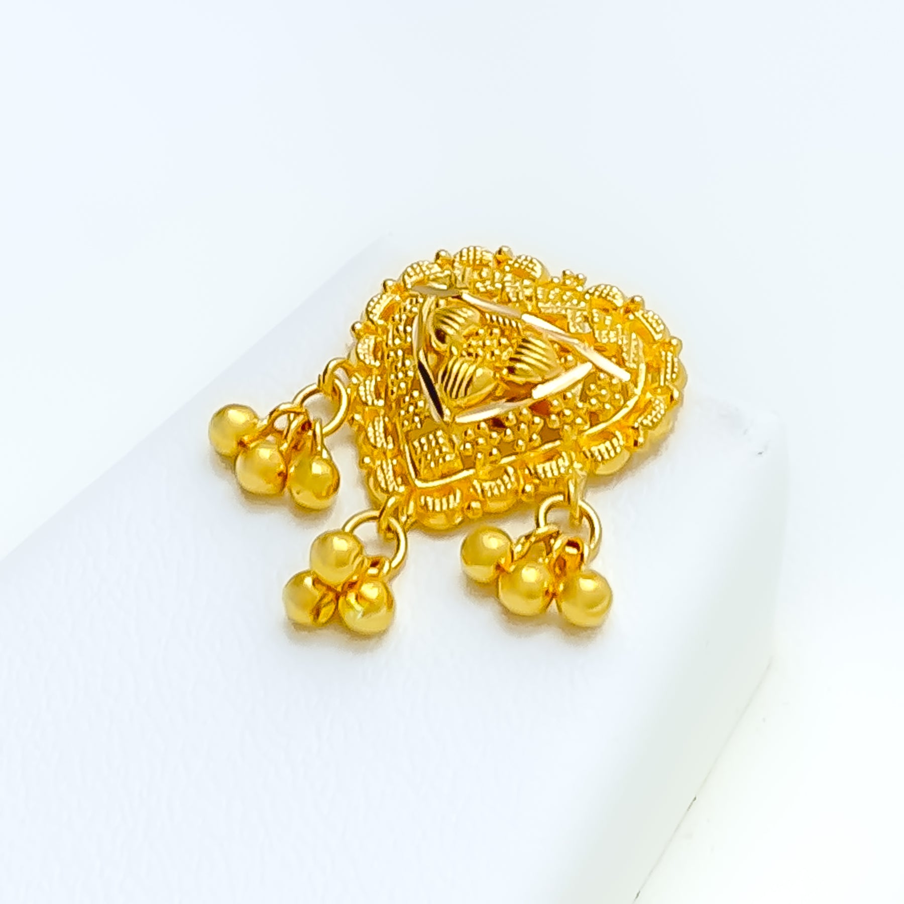 Fancy Beaded Marquise Leaf 22k Gold Pendant Set