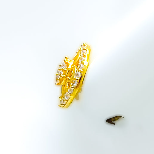 These refined top earrings highlight brilliant CZ stones that enhance their petite 0.4-inch silhouette with eye-catching radiance. At 3.3 grams, the yellow gold design maintains a graceful balance of lightweight comfort and polished elegance. Their stylish form adds a touch of modern charm that transitions seamlessly from casual wear to elevated looks. Secured with dependable screw backs, they offer a versatile and timeless accent for any thoughtfully assembled jewelry collection.