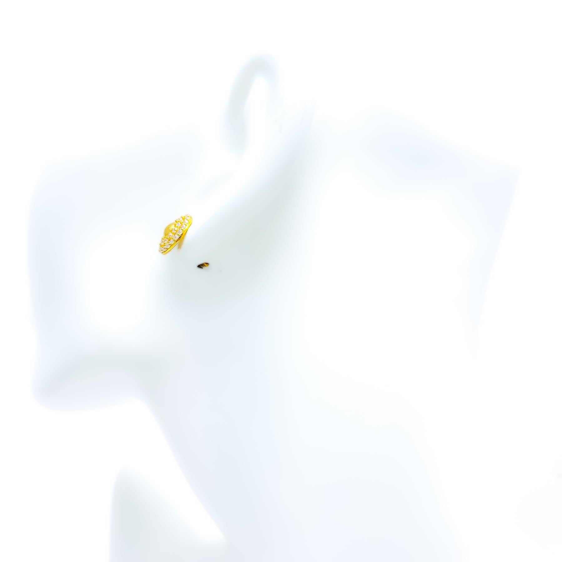 These luminous top earrings feature radiant CZ stones that enhance their refined 0.5-inch profile with a touch of graceful sparkle. The 4.1-gram yellow gold design offers a delicate yet noticeable presence, ideal for elevating both casual and dressy looks. Their polished finish highlights a timeless charm that feels effortlessly elegant for everyday wear. Secured with dependable screw backs, they deliver a poised and versatile addition to any curated jewelry collection.