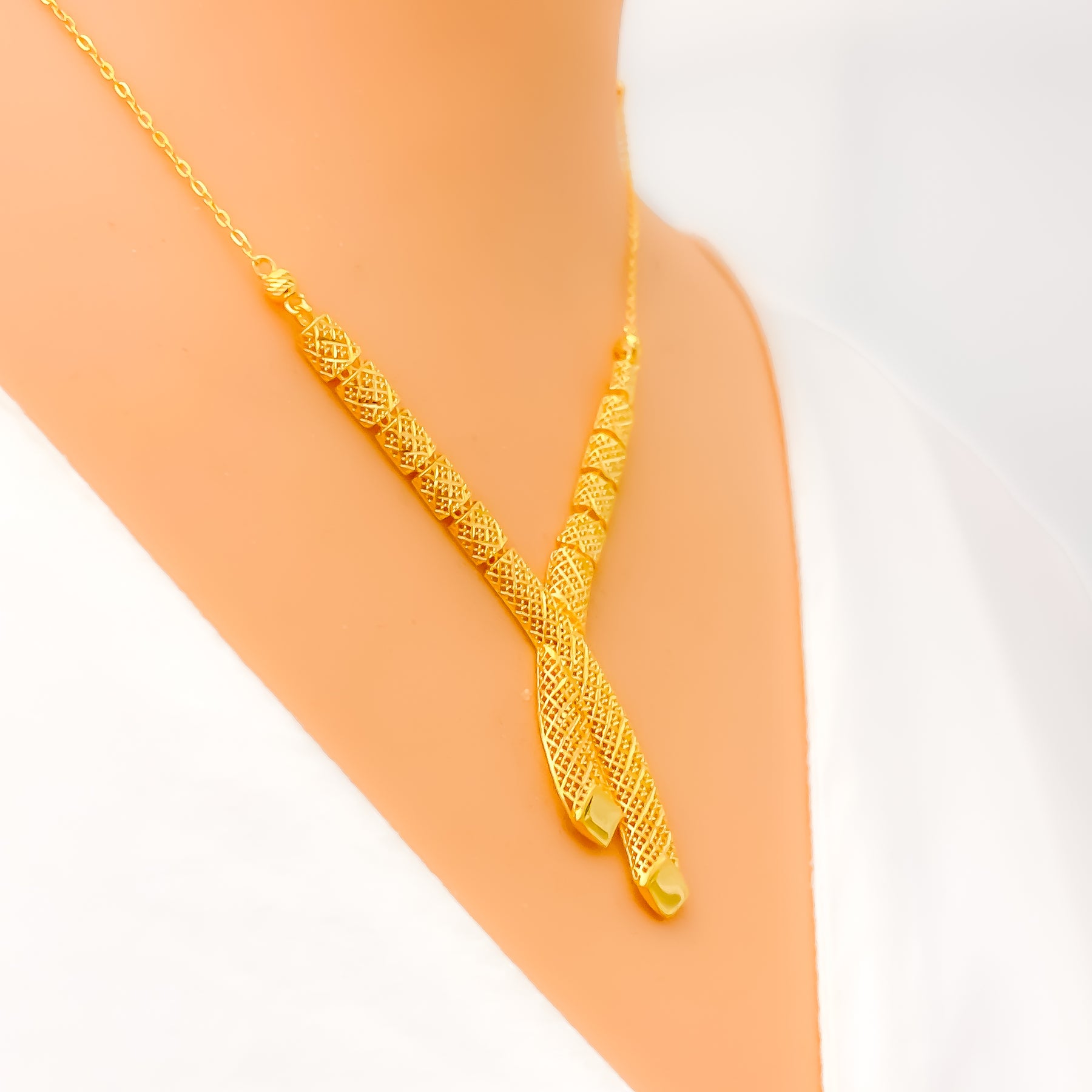 Reflective fancy 22k Gold Netted Necklace Set