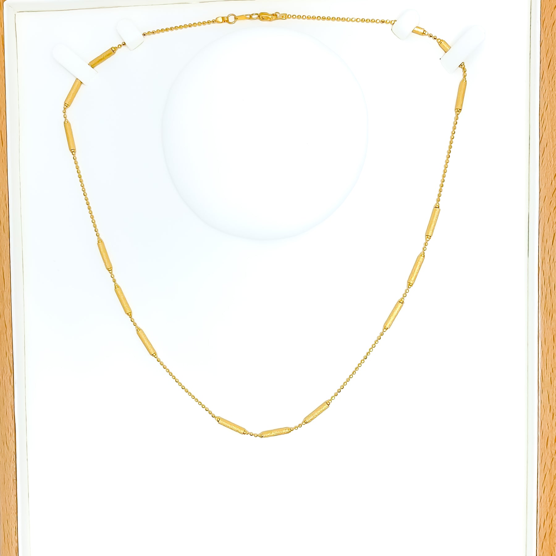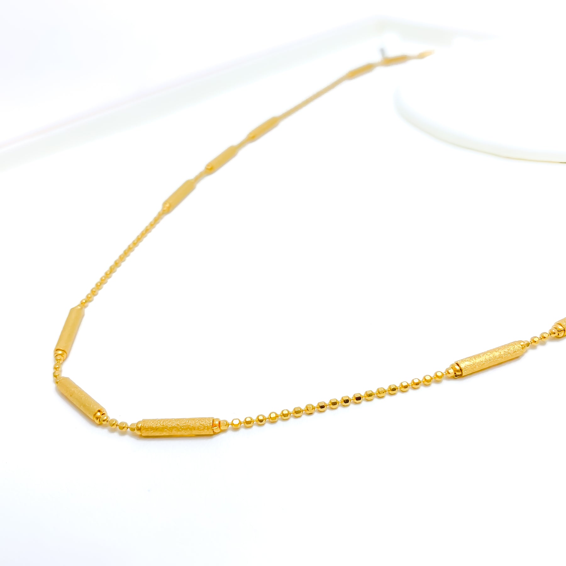 Sand Finished 22k Gold Barrel Bead Chain - 20"