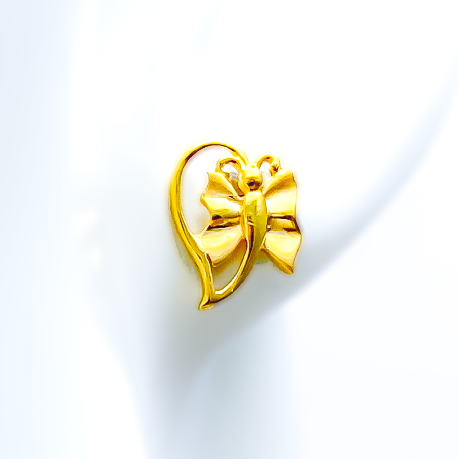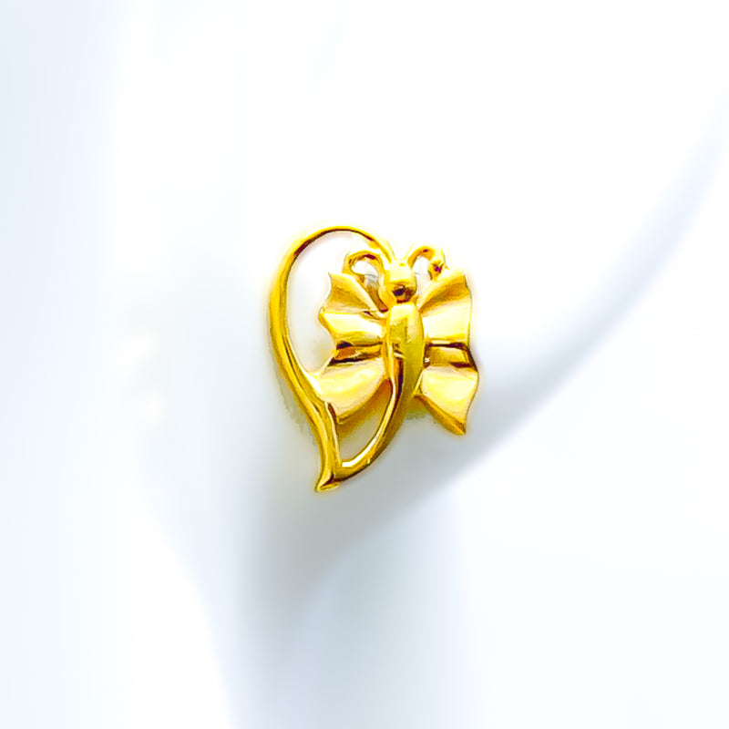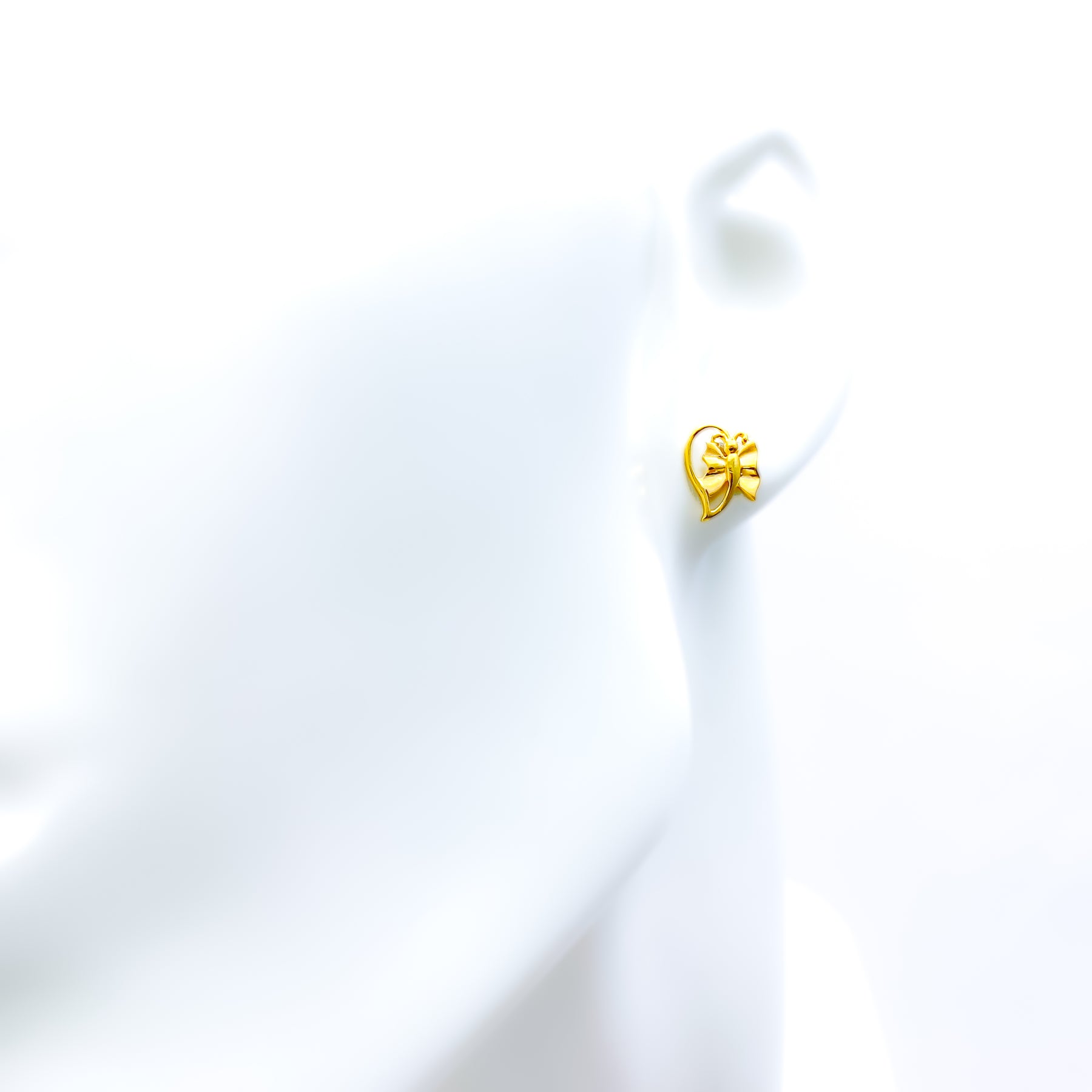Delicately shaped in a charming butterfly motif, these 22k gold top earrings offer a bespoke blend of whimsy and refinement. Crafted from 1.7 grams of rich yellow gold, they measure 0.5" and feature secure screw-back posts—perfect for adding a graceful yet distinctive accent to your everyday look.
