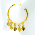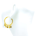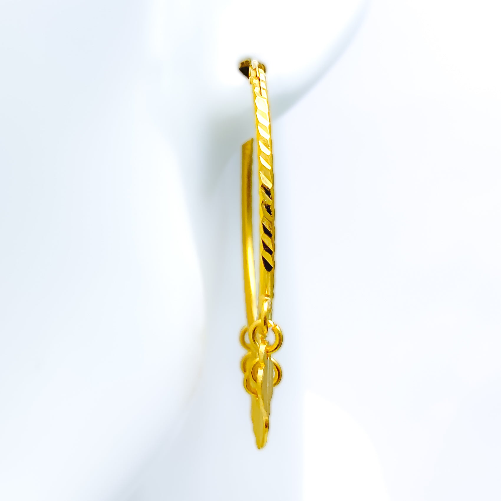 Commanding attention with radiant allure, these 22k yellow gold Bali earrings weigh 7.5 grams and feature a bold hoop silhouette with a shimmering polished finish. Measuring 1.3 inches in diameter and 1.75 inches in total length, they offer an impactful presence while maintaining refined elegance. Perfect for those who favor statement accessories with traditional craftsmanship, this pair adds golden brilliance and bold charm to any look.