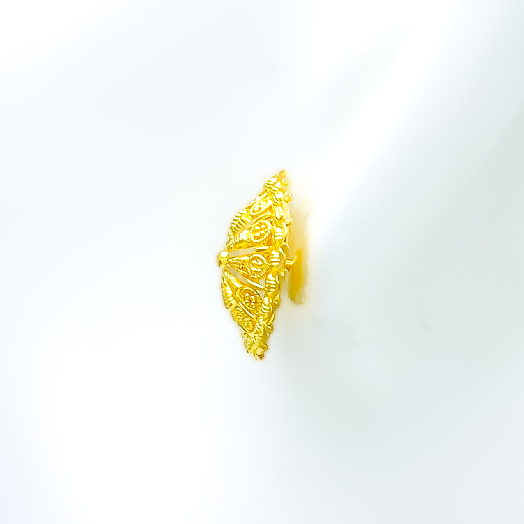 Crafted to impress, these 22k gold earrings radiate elegance with a refined yellow gold finish. The 0.7" diameter creates a graceful, eye-catching silhouette that transitions seamlessly from day to night. Their rich gold hue and polished design deliver a timeless, upscale look. Finished with secure screw-back posts, they combine comfort with enduring style.