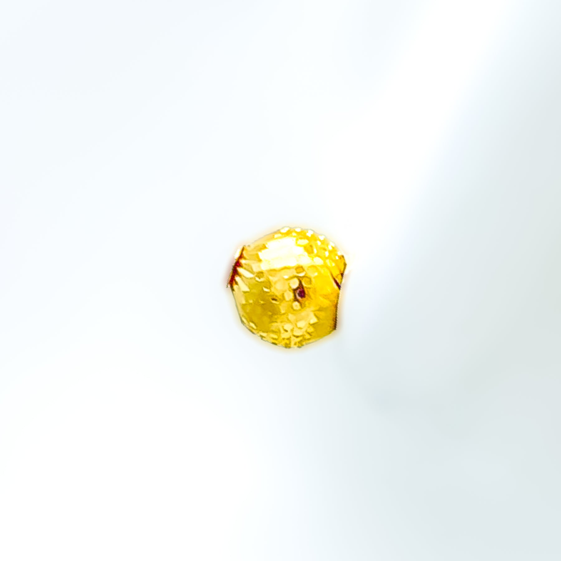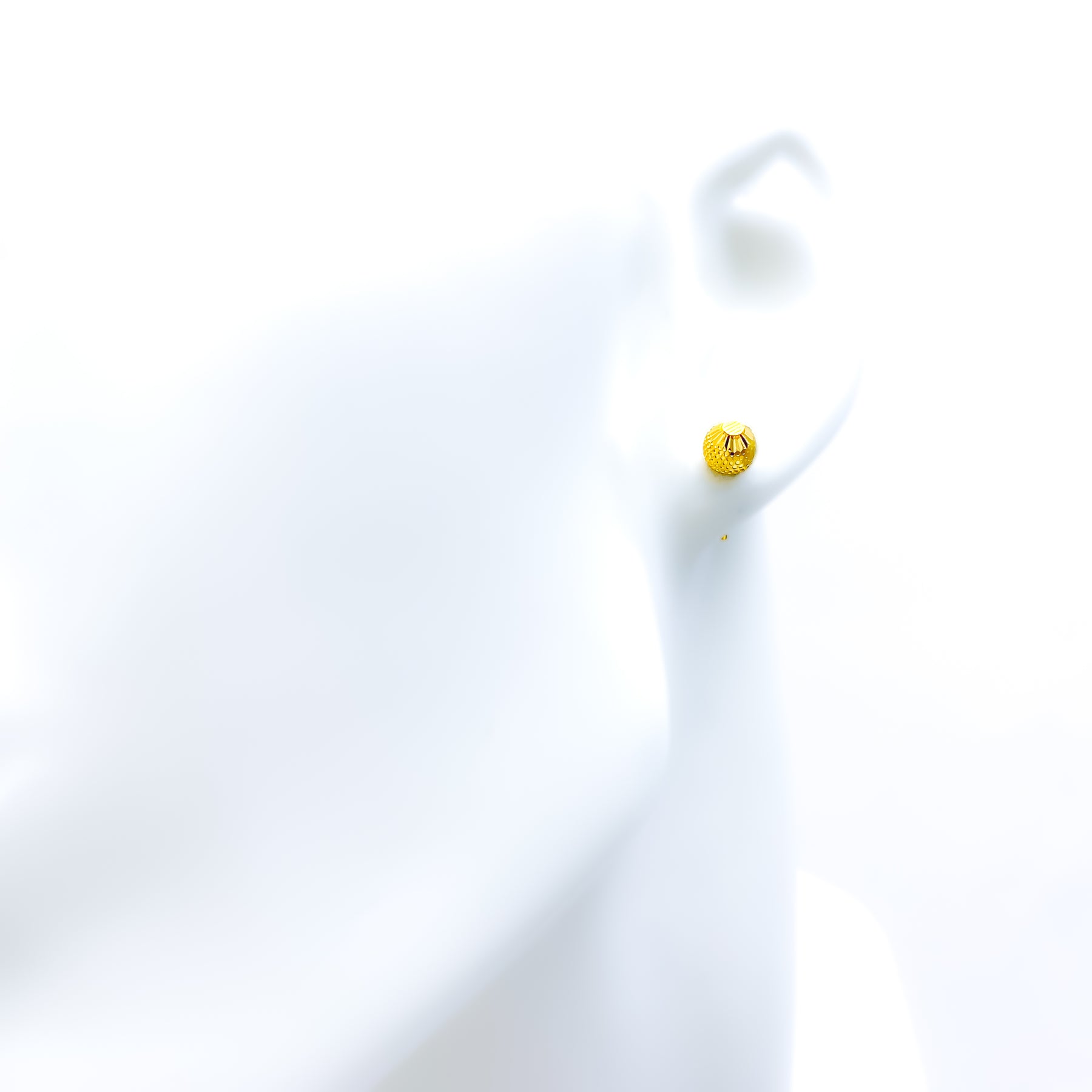 Elegantly detailed, these 2.3-gram earrings in 22k yellow gold showcase intricate engraving within a refined 0.25-inch diameter. Designed with classic push backs, they provide both security and comfort. A fancy yet graceful choice, perfect for adding texture and richness to any ensemble.