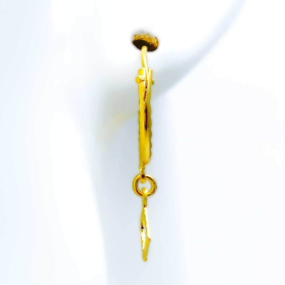 Delicately crafted in 22k yellow gold and weighing just 1.6 grams, these Bali earrings feature an intricate design that exudes lightness and grace. With a compact 0.6-inch diameter and a 1.1-inch length, they offer a refined profile perfect for understated elegance. The polished finish enhances their ethereal glow, making them an ideal choice for those who appreciate fine detailing in a lightweight, timeless hoop style.