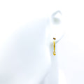 Striking a balance between simplicity and boldness, these 22k yellow gold Bali earrings weigh 1.5 grams and feature a clean 0.6-inch diameter with a subtle 0.8-inch length. The polished finish accentuates their sharp, streamlined profile, making them perfect for those who appreciate understated elegance with a modern twist. A sleek essential for minimalist styling with a touch of edge.