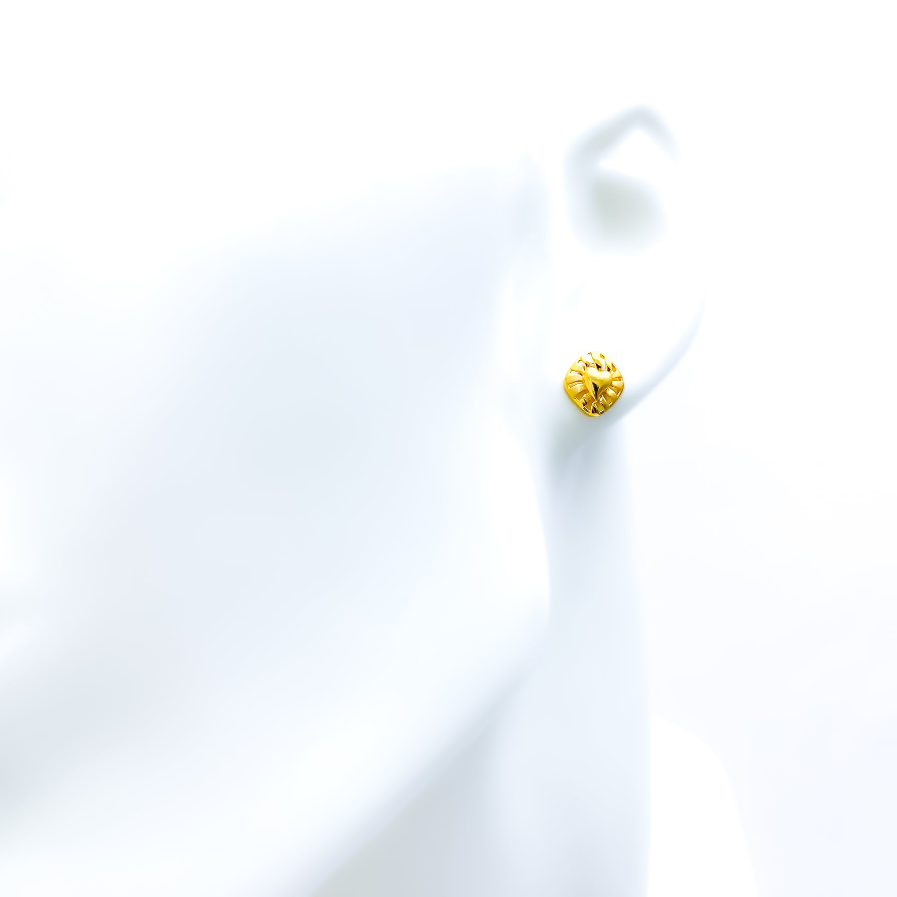 Crafted with romantic charm, these radiant 22k yellow gold earrings feature a luminous heart motif that captures timeless affection. Weighing 1.8 grams with a petite 0.3" length, they add a refined accent to any look. The screw-back posts ensure a secure and graceful everyday fit.
