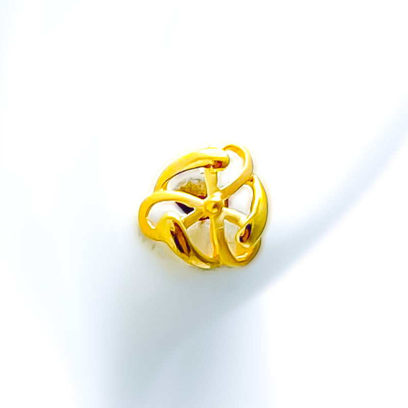 Gracefully crafted with a layered floral design, these 22k gold top earrings exude timeless charm and modern femininity. Their lightweight 1.4g build and gleaming yellow gold finish offer comfortable elegance, while the compact 0.3" size and screw-back post ensure secure, everyday sophistication.