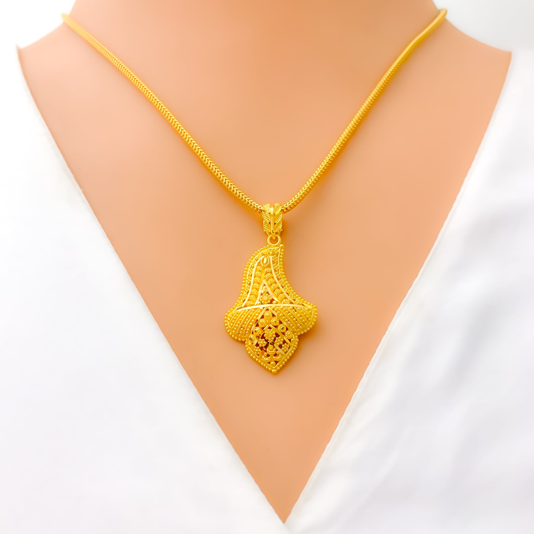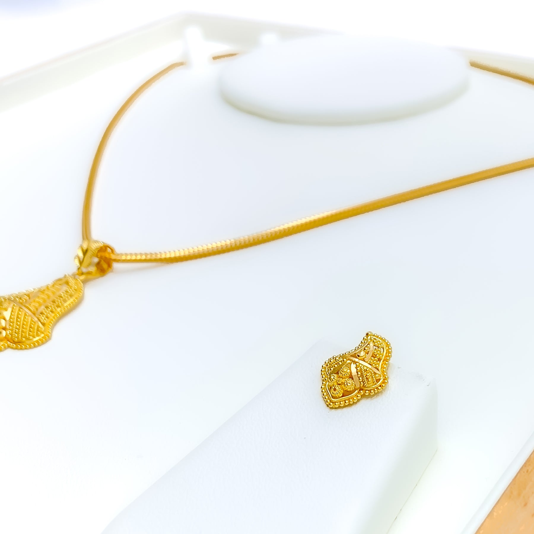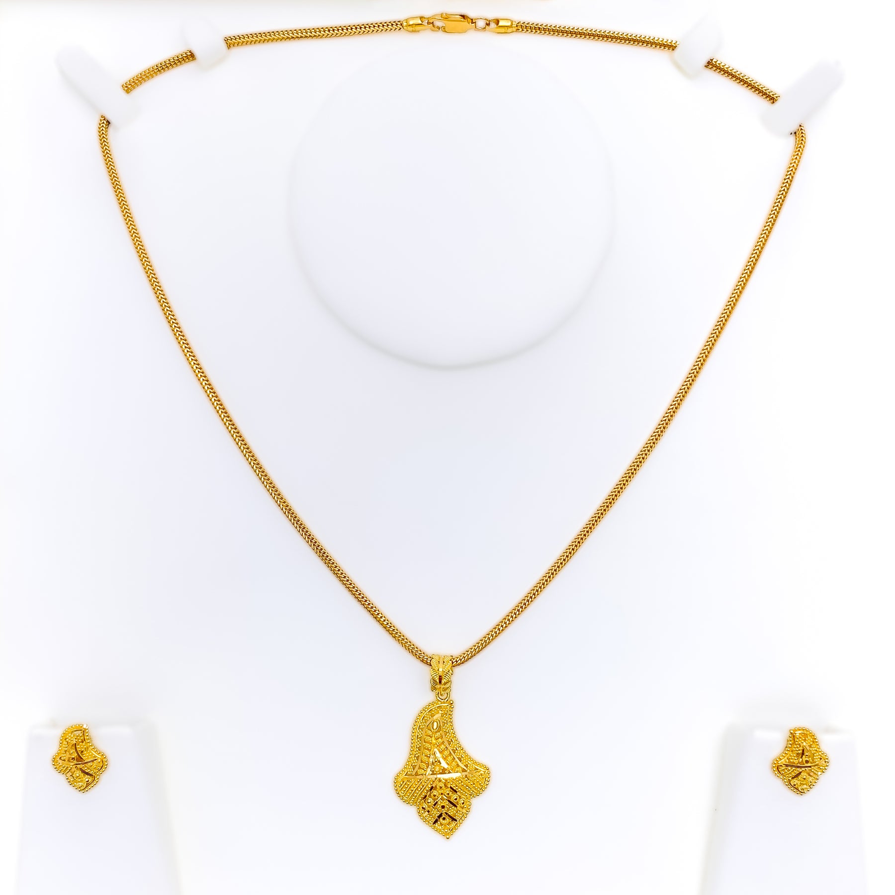 Dual Tone Marquise Leaf 22K Gold Pendant Set
